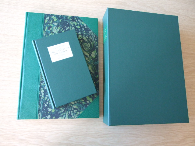 Shakespeare, William - The Letterpress Much Ado about Nothing Limited Edition (Published in by The Folio Society in 2008. Slipcased Letterpress edition. Limited Edition of 1000 numbered copies. A Letterpress edition of Shakespeare's play, created with the highest quality materials and craftsmanship. Quarter-bound in goatskin leather, blocked in gold with hand-marbled paper sides; gilded top edge and ribbon marker. Set in 16pt 'Monotype' Baskerville, printed by letterpress on mould-made paper. Letterpress volume: 14" x 10.75". A pleasure to read Shakespeare's glorious language lies at the heart of his plays and here, free from the clutter of notes, every line is given the appropriate space to breathe. The text is printed by letterpress, a method now used only for the very finest private press publishing. Meticulously set on a traditional monotype machine, rather than a computer, the type letters have been individually created from hot metal in the rarely used 16-point font of 'Monotype' Baskerville. The shape of each line, and the arrangement of lines on the page, are adjusted by hand to create the most pleasing overall effect for the reader. The layout of words on a printed page is as much an art as such ancient techniques as Chinese or Arabic calligraphy. Here, the text is designed by eye and set on a manual machine, not a computer. Each letter of type has been created from hot metal in the rarely used 16-point font of 'Monotype' Baskerville, chosen for its clarity and elegance of form. Tiny irregularities testify to the hand-crafted nature of the process, since the shape of each line, the very gap between letters, is adjusted by hand to create the most pleasing overall effect. A book is a pleasure of many senses: the feel of it in the hands, even the smell of the leather and ink all contribute to the enjoyment. Running your fingers over the paper, the difference between letterpress and litho printing is instantly discernable. You can feel the indentation where each letter has been impressed into the mould-made paper. This high quality paper is made from cotton rags and wood fibres dried on a cylindrical mould which produces the feathered edge known as the 'deckle'. The quarter-binding is of finest goatskin leather, dyed to a rich colour. The pattern on the hand-marbled paper sides is unique to each volume. The craftsmen and women who work on these volumes are rightly proud of their involvement in the project. From the hand-sewing of the pages to the blocking of each label in 24-carat gold, few books have had such care lavished on them. You can be confident that these exceptional editions will give pleasure for generations to come. Unmatched in comedy and tragedy, poetry and prose, Shakespeare's plays are the crowning jewel of the English language. The creation of beautiful reading editions worthy of their stature is a dream that all lovers of his works will understand a dream realised in The Folio Society's Letterpress Shakespeare series. Here, Shakespeare's words are given the space and setting they deserve. The meticulously designed pages and the clear and elegant type entice the eye to read, whilst the leather quarterbindings, gilded top edges and hand-marbled paper sides make these volumes a pleasure to look at and a delight to own. )