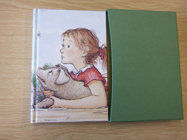 White, E B - Charlotte's Web (Published in by The Folio Society in 2009. Cover printed with an illustration by Garth Williams. 192 pages with 47 colour illustrations. As the runt of the litter, Wilbur the pig is destined not to survive. Fern the farmer's daughter thinks this is 'the most terrible case of injustice' and because of her pleas, he is allowed to live. In the barn, he's given heaps of food and starts to put on weight. What Wilbur doesn't realise, however, is that other plans are afoot. 'I don't like to spread bad news,' says the sheep, 'but they're going to turn you into smoked bacon and ham.' Wilbur cannot believe his ears. Why save him, only to fatten him up and eat him later? Fortunately, help is at hand in the unlikely form of Charlotte, a sagacious spider resident in the barn who dreams up a cunning plan to save Wilbur from his otherwise inevitable fate. )