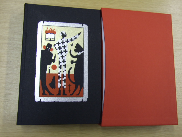 Bulgakov, Mikhail - The Master and Margarita (Published in by The Folio Society in 2010. Introduced by Orlando Figes. Book Illustrated by Peter Suart. Translated by Richard Pevear and Larissa Volokhonsky. Bound in buckram. On a hot spring afternoon in Moscow, a poet and an editor are discussing the non-existence of Jesus. A polite, foreign gentleman interrupts their debate, claiming to have known Jesus in person and to have been present when he was condemned by Pontius Pilate. Moreover, he predicts the editor's death – a bizarre accident which happens exactly as the foreigner foretells. The Devil has arrived in Moscow and, along with his demons and a large black cat, he carves a trail of chaos and destruction through Soviet society. He exposes the hypocrisy and greed of those around him, their willingness to inform on neighbours, their urgent scrabble for power and their fear for themselves. One man seems different: a writer known as 'the master' who, in despair, has burned his unpublished novel about Pontius Pilate and has been incarcerated in an asylum. His lover, the passionate, courageous Margarita, will do anything to save him – including serving the Devil himself. Writing The Master and Margarita in secret between 1928 and 1940, through the period of Stalin's purges, Bulgakov was already deemed anti-Soviet; his plays were banned, and he had few illusions that anyone would publish this highly satirical work. Like his main character, he destroyed a draft in despair. Yet, as the Devil tells the master, in a phrase which went on to become a watchword of hope: 'Manuscripts don't burn'. In 1966-7, more than 25 years after Bulgakov's death, The Master and Margarita was published with relatively minor cuts. Smuggled past the censors, its subversive message, dark humour and lyrical force combined to make it an instant success and a beacon of optimism and freedom that spread through Russia and the world. Peter Suart's dramatic illustrations provide a fitting accompaniment. )
