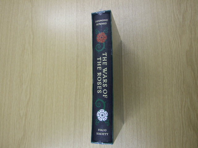 Seward, Desmond - The Wars of the Roses (Published in by The Folio Society in 2011. New preface by the author. Bound in buckram. Blocked with an illustration by Frances Button. Set in Janson. 400 pages. Frontispiece and 24 pages of colour and black & white plates. Book Size: 10 × 6.75 ins. 'The getting of the garland, keeping it, losing and winning again, it hath cost more English blood than hath twice the winning of France.' So said the Duke of Buckingham in 1483 of the prolonged and bloody conflict between the Houses of York and Lancaster, which later became known as the Wars of the Roses. Between 1455 and 1487, it claimed the lives of three kings, a Prince of Wales, eight dukes and a third of the peerage, as well as thousands of knights and ordinary soldiers. Desmond Seward's scholarly and engrossing work conveys all the drama of those turbulent decades. While most histories focus on the rival kings – Henry VI and Edward IV, Richard III and Henry VII – Seward builds his account around five individuals from both sides, whose eventful careers spanned the Wars. They are the Yorkist hero William Hastings, noted for his bravery, personal charm and dissolute private life; the Lancastrian John de Vere, a fine soldier and tactician; Lady Margaret Beaufort, who founded the Tudor dynasty when she gave birth to the future Henry VII at the age of 13; Dr John Morton, who was taken prisoner by the Yorkists after the battle of Tewkesbury and joined their cause; and Jane Shore, the mistress of Edward IV, forced to do public penance by walking barefoot through the City of London. Seward uses these five figures to guide us skilfully through the plots, beheadings, dynastic marriages, murders and exiles of these terrible decades. The English were regarded as the most bloodthirsty race in Christendom; the French chronicler Froissart wrote, 'They take delight in battles and slaughters.' Europe watched with amazement as entire noble families were exterminated and their property confiscated. Switching allegiance inevitably became a habit among the ruling class, not out of disloyalty but out of sheer terror. Seward shows how, because of the fragility of the regimes, these difficult choices had to be made again and again. This is an outstanding account, both vivid and intimate, of one of the bloodiest periods in English history. )
