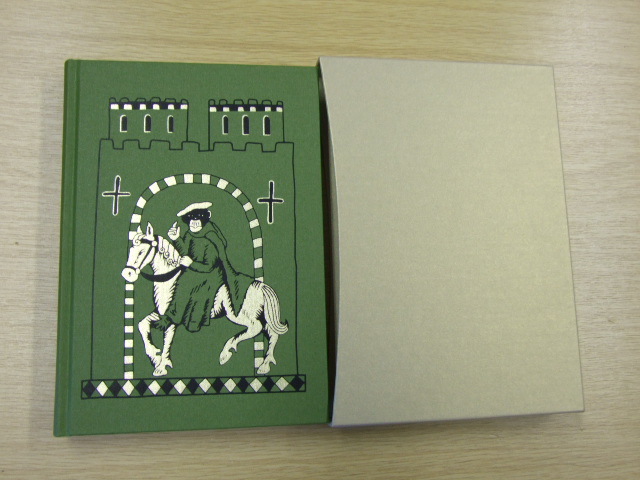 Brewer, Derek - Medieval Comic Tales (Published in by The Folio Society in 2012. Preface by Peter Ackroyd. Illustrated by Becca Thorne. Bound in buckram. Blocked with a design by Becca Thorne. Set in Poliphilus. 304 pages. 20 black & white illustrations. Book size: 9" × 6.25". Quick-thinking wives caught with their lovers turn the tables on their husbands; a trickster exposes the impiety of a priest; St Peter rescues all the souls in hell by gambling with loaded dice ... When Chaucer and Boccaccio wrote The Canterbury Tales and the Decameron, they were drawing upon a great wealth of comic tales, ranging from crude anecdotes to mock courtly romances. Derek Brewer's compendium, first published in 1973, brings together a selection that spans the length and breadth of Europe, some written in the vernacular, some in Latin. Organised by country of origin, they are translated in pithy prose that captures the flavour of the originals. The reader will recognise the sources of later comic stories ('The Smith in the Baking-Trough' from Germany inspired Chaucer's 'The Miller's Tale') within a treasure-trove of often ribald tales. There is plenty of innuendo and wordplay: a monk who blesses a maiden with his own personal trinity; half-shocking blasphemies, such as the Friar who preaches against riding on a Sunday and, when challenged that Christ rode on Palm Sunday, replies, 'What came of it? Wasn't he hanged on the Friday after?' There are farcical mistaken identities: a porter paid to throw a hunchback in the river ends up disposing of four different men. And there are cruel tricks: a deceived husband tells his wife that her illegitimate 'snow-child' melted, when, in fact, he sold the boy as a slave. The book is illustrated with witty linocuts by Becca Thorne, modelled on illuminations from psalters and bestiaries. In his original introduction, Derek Brewer explores the role humour played, then as now, in binding and defining cultures and communities. Peter Ackroyd has written a new preface in which he considers the nature of this humour, musing that, 'In a world of pain and suffering … the restorative power of laughter must have been proportionately great' . )