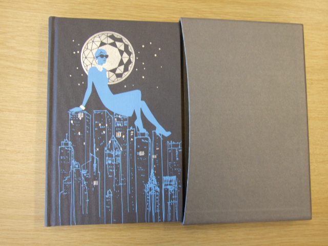 Capote, Truman - Breakfast at Tiffany's (Published in by The Folio Society in 2013. Bound in buckram. Blocked with a design by Karen Klassen. Set in Bodoni. 128 pages. Frontispiece and 6 colour illustrations. Book size: 9" x 5.75". Beginning with a chance glimpse in a shared apartment building, Truman Capote's enchanting novella charts the friendship between an aspiring writer who has just moved to New York City, and his neighbour Holly Golightly: girl about town, genteel gold-digger and free spirit. It is one of the quintessential American stories of the 20th century. This edition features striking artwork by Canadian artist Karen Klassen, whose background is in fashion illustration. Holly is at the centre of each of her images, including her dramatic binding design, depicting Holly on top of the Manhattan skyline. In his introduction, novelist and critic Jay McInerney points out the similarities between this book and another that Capote admired: The Great Gatsby. Holly shares Gatsby's combination of mystery, glamour and vulnerability. Yet Capote has a humour and lightness of touch all of his own; he revels in Holly's joie de vivre and his characters' dialogue, much of which appears word for word in the 1961 film: "It's too gruesome; I'm going to march you over to the zoo and feed you to the yak." )