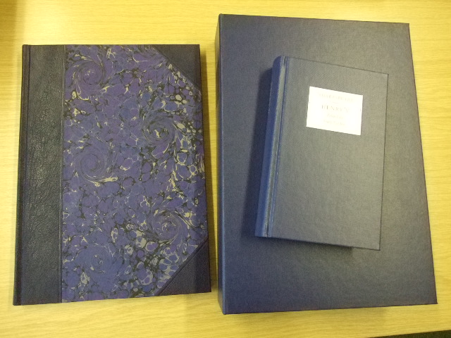 Shakespeare, William - The Letterpress Henry the Sixth 6th VI Part 2 Limited Edition (Published in by The Folio Society in 2014. Solander box. Boxed Letterpress edition. Numbered copy of 300 numbered copies. A Letterpress edition of Shakespeare's play, created with the highest quality materials and craftsmanship. Quarter-bound in goatskin leather, blocked in gold with hand-marbled paper sides; gilded top edge and ribbon marker. Set in 16pt 'Monotype' Baskerville, printed by letterpress on mould-made paper. Letterpress volume: 14" x 10.75". A pleasure to read Shakespeare's glorious language lies at the heart of his plays and here, free from the clutter of notes, every line is given the appropriate space to breathe. The text is printed by letterpress, a method now used only for the very finest private press publishing. Meticulously set on a traditional monotype machine, rather than a computer, the type letters have been individually created from hot metal in the rarely used 16-point font of 'Monotype' Baskerville. The shape of each line, and the arrangement of lines on the page, are adjusted by hand to create the most pleasing overall effect for the reader. The layout of words on a printed page is as much an art as such ancient techniques as Chinese or Arabic calligraphy. Here, the text is designed by eye and set on a manual machine, not a computer. Each letter of type has been created from hot metal in the rarely used 16-point font of 'Monotype' Baskerville, chosen for its clarity and elegance of form. Tiny irregularities testify to the hand-crafted nature of the process, since the shape of each line, the very gap between letters, is adjusted by hand to create the most pleasing overall effect. A book is a pleasure of many senses: the feel of it in the hands, even the smell of the leather and ink all contribute to the enjoyment. Running your fingers over the paper, the difference between letterpress and litho printing is instantly discernable. You can feel the indentation where each letter has been impressed into the mould-made paper. This high quality paper is made from cotton rags and wood fibres dried on a cylindrical mould which produces the feathered edge known as the 'deckle'. The quarter-binding is of finest goatskin leather, dyed to a rich colour. The pattern on the hand-marbled paper sides is unique to each volume. The craftsmen and women who work on these volumes are rightly proud of their involvement in the project. From the hand-sewing of the pages to the blocking of each label in 24-carat gold, few books have had such care lavished on them. You can be confident that these exceptional editions will give pleasure for generations to come. Unmatched in comedy and tragedy, poetry and prose, Shakespeare's plays are the crowning jewel of the English language. The creation of beautiful reading editions worthy of their stature is a dream that all lovers of his works will understand a dream realised in The Folio Society's Letterpress Shakespeare series. Here, Shakespeare's words are given the space and setting they deserve. The meticulously designed pages and the clear and elegant type entice the eye to read, whilst the leather quarterbindings, gilded top edges and hand-marbled paper sides make these volumes a pleasure to look at and a delight to own. )