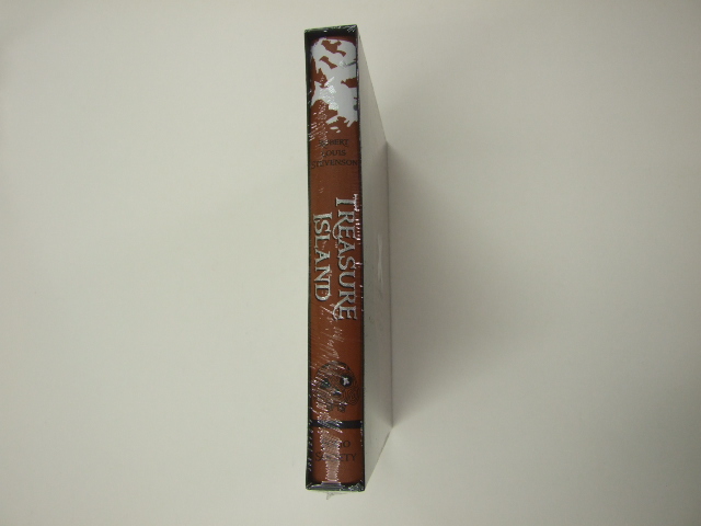 Stevenson, Robert Louis - Treasure Island illustrated by Sterling Hundley (Published in by The Folio Society in 2014. Introduced by Michael Morpurgo. Illustrated by Sterling Hundley. A classic tale of heroism, piracy and adventure that has never been equalled – with an introduction by Michael Morpurgo. Treasure Island. 'I remember him as if it were yesterday, as he came plodding to the inn door, his sea-chest following behind him in a handbarrow.' Young Jim Hawkins is at once terrified and captivated by the rum-soaked sea-dog who takes up lodgings at his father's inn, the Admiral Benbow. But after discovering a treasure map in the sailor's trunk, Jim embarks on a perilous journey of treachery, heroism and piracy aboard the ship Hispaniola. Winner of the Book Illustration award and overall prize at the V&A Illustration Awards 2015. Treasure Island book. Bound in buckram, blocked with a design by Sterling Hundley. Set in Bulmer. 256 pages; frontispiece and 11 colour illustrations and the original Stevenson map. Printed endpapers. Blocked slipcase. 10" x 7.5". A collector's edition of a swashbuckling classic. Sterling Hundley created his compelling illustrations using a combination of pencil drawing, painting and digital techniques. His work is both influenced by and stands out from a long tradition of illustrating this iconic story. As Hundley remarked when accepting the commission: 'Treasure Island is hallowed ground in the world of illustration. I would be honoured to take on the project.'. In 1882, the year before Treasure Island was published, Stevenson lamented that romantic tales had become eclipsed by realism: 'English people of the present day are apt, I know not why, to look somewhat down on incident … It is thought clever to write a novel with no story at all, or at least with a very dull one.' His answer was to write an adventure story that would become ubiquitous, a novel that would not only set a course for future children's literature, but also conjure characters, motifs and language that would become part of our collective imagination. Indeed, a pirate without a buried treasure and a wooden leg, a talking parrot and 'pieces of eight', is no pirate at all. Nurtured by Stevenson's rebellious nature, the text is informed by an air of moral ambiguity – an air that becomes manifest in the seductive charm of Long John Silver. As Michael Morpurgo writes in his new introduction, 'Like Jim, we are at first entertained and entranced by Silver, then appalled and entranced again.' Silver's moral pragmatism flew in the face of the stale fiction for boys that preceded Stevenson's landmark work. The text's darkling nature is captured in Sterling Hundley's enthralling illustrations, which convey both the vivid excitement of Jim's travels and the claustrophobic terror he feels as the journey begins to go awry. Also included is the treasure map drawn by Stevenson. Rarely printed in colour, the different inks represent various characters' annotations. The blocked, skull-emblazoned slipcase is a reminder of the pirates' treachery, the Jolly Roger and the chilling refrain, 'Fifteen men on the dead man's chest / Yo-ho-ho, and a bottle of rum!'. Click here to read a blog post by the illustrator, Sterling Hundley. An adventure both incredible and believable. With a deft dab of description, with a turn of phrase or a tone of voice, Robert Louis Stevenson brings everyone in Treasure Island to life: Jim Hawkins, Long John Silver, Dr Livesey, Ben Gunn and the rest. Each and every one is both plausible and complex. Through Jim's wide eyes—I was Jim when I first read this book, saw all of it, lived it, through him—we see the Jekyll and Hyde in Long John Silver. Like Jim, we are at first entertained and entranced by Silver, then appalled and entranced again. The thread of the story is seamless because no one is pulling the strings except the characters themselves; the author just goes along with them, or so it seems. It takes life so convincingly. We believe at once in poor Ben Gunn, live with Jim as he overhears murderous conspiracy while hidden in the barrel of apples on board the Hispaniola, and as he endures danger and fear with his friends behind the stockade on Treasure Island. As for place, I know the Admiral Benbow inn, where the book begins, as well as I do my own village pub. I can picture every nook and cranny of it. I know the Hispaniolaem. As well as if I'd sailed on her—from the exact location of the barrel of apples in which Jim hides, to how the sails are set and how the lantern swings below in the cabin, how she creaks and groans at sea or riding at anchor. And Treasure Island I know like I know the island of Bryher in the Isles of Scilly, where I've spent my summer holidays for over thirty years. (I'm sure Treasure Island is why I go there.) Jim Hawkins has taken me to Treasure Island and shown me the lie of the land, the marshy groves, the stockade on the hill. I know the entire coastline as Jim takes the helm of the Hispaniola, and single-handedly sails the ship. All utterly incredible, but made credible. An extract from Michael Morpurgo's introduction. From the Folio Society description. )