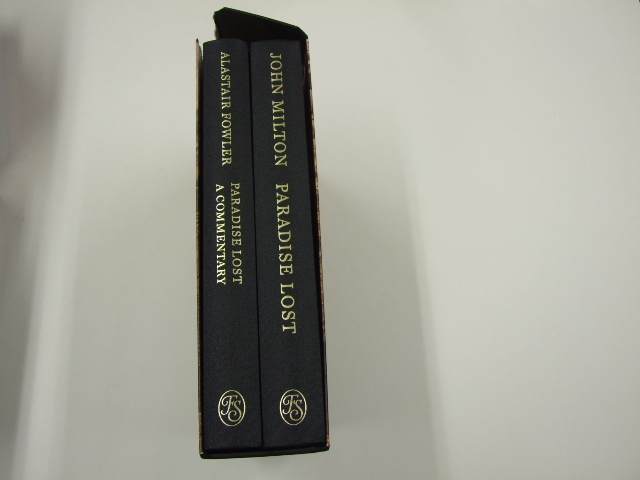 Milton, John - Paradise Lost (Published in by The Folio Society in 2015. Introduced by Michael Prodger. Illustrated by John Martin. This fine edition unites John Milton's greatest poem with 24 mezzotints by John Martin, together with a separate commentary volume by Alastair Fowler. In 1658 John Milton, grieving the loss of his wife, his sight, and his political hopes, set out 'to justify the ways of God to man'. To tell the story of the angels' Fall and Adam and Eve's exile from Paradise was ambitious enough, but Milton went further. He forged a new style of epic blank verse in the vernacular, openly invoking the same muse who had inspired Homer and Virgil. The result was a work of poetic and psychological genius. The stern beauty of Milton's poetry, with its stately unfolding clauses and inexorable forward movement, is without parallel. In 1825 John Martin, best known for his dramatic paintings of biblical scenes, exhibited 20 mezzotints depicting Paradise Lost. One critic wrote, 'We know of no artist whose genius so perfectly fitted him to be the illustrator of the mighty Milton … There is a wildness, a grandeur, and a mystery about his designs which are indescribably fine.' Martin used mezzotint to dramatic effect, creating monumental vistas lit with a play of dark and light that echo the war at the heart of the poem. 'One of those rare instances where a writer and artist are felicitously matched, as Ovid's Metamorphoses were with Titian' . MICHAEL PRODGER. Production Details. 2 volumes. Quarter-bound in buckram with cloth sides. 704 pages in total. 24 mezzotints. Gilded page tops. Presented in a slipcase printed with The Great Day of His Wrath by John Martin, 1851–3. (©Tate, London 2014). 12.75" × 9.75". JOHN MILTON: 1608–74. Paradise Lost . John Milton was born in London in 1608 and educated at St Paul's School and Christ's College, Cambridge. He left Cambridge in 1632, but continued to study privately before embarking on a tour of France and Italy in 1638–9. After returning to England prematurely, amidst rumours of civil war, Milton began to write pamphlets in support of the Parliamentary cause. He also published Poems of Mr John Milton, both English and Latin in 1645, but his wider known doctrinal tracts earned him a reputation for political acumen, and he was appointed Secretary for Foreign Tongues in 1649. He continued to write in defence of the Commonwealth, and it was during this time that Milton's eyesight began to deteriorate; he was completely blind by 1651. After the failure of the Commonwealth he was briefly imprisoned, and following his release he returned to poetry. His masterpiece, Paradise Lost, was published in ten books in 1667. Its sequel, Paradise Regained, and the tragedy Samson Agonistes were published in 1671. An expanded version of his shorter poems was published in 1673, and the 12-book edition of Paradise Lost in 1674, shortly before Milton's death in the same year. This edition includes notes by the great Milton scholar Alastair Fowler. A work of art in themselves, they help us appreciate Milton's poem in all its richness. As with our Letterpress Shakespeare, the notes are confined to a separate volume, allowing the verse to be presented free of all textual apparatus. The poem is that edited by Fowler, first published with his notes in 1968. Critic Michael Prodger has written a new introduction celebrating the artistic pairing of John Milton and John Martin. This fine edition has been printed on Abbey Wove paper at Kösel, Krugzell, Germany, and quarter-bound by them in buckram. The illustrations were printed at Taylor Bloxham in Leicester using Sirio Calce Stucco, a beautifully heavy paper. The slipcase shows The Great Day of His Wrath – one of the apocalyptic paintings for which Martin remains best known. Paradise Lost. Paradise Lost. Paradise Lost Paradise Lost. Darkness visible: the art of John Martin. John Martin was born in 1789, the son of a fencing master, and found success late in life with his large-scale dramatic and apocalyptic pictures, including Belshazzar's Feast. In 1823 he was commissioned to illustrate Paradise Lost with a series of mezzotints, a form of engraving that allows for a great variety of tones. Unlike most artists, who produced pictures that were then turned into printing plates by others, Martin engraved the mezzotints himself. The resulting vistas, with their cavernous architecture and tiny figures, appear to be lit by the fires of heaven and hell themselves. Like the poem, each of his illustrations offers rich and multi-layered detail that repays long and careful viewing. Martin produced some of his finest artwork towards the end of his life, including his Last Judgment triptych (1851–3). He died in 1854. Illustrations clockwise from above right: Him thus intent Ithuriel with his spear / Touched lightly (IV, 810–11); Eve, now expect great tidings . (XI, 226); She gave him of that fair enticing fruit With liberal hand . (IX, 996–7). Paradise Lost. Paradise Lost. Paradise Lost. Author and academic John Mullan on Alastair Fowler's edition. Milton was deeply learned: widely read in Greek, Latin, Hebrew and Italian, steeped in theology and acrimoniously versed in political theory, intrigued by the latest scientific and astronomical knowledge, as well as a lover of English poetry. All this flooded into his verse and we need help to see it. Alastair Fowler's edition of Paradise Lost gives all of us a new sensitivity to the poem. It is the fruit of a lifetime's scholarship, the earliest version appearing almost fifty years ago. Even this was not the final word. A third and final edition was completed in 2006, after his retirement, adding new allusions and subtleties of interpretation. Fowler loves Milton – but he also thinks of the reader. Where he needs to, he will tell you in a direct way what words and phrases mean. He certainly does not believe that the poetry is too grand for paraphrase. Indeed, his explanati