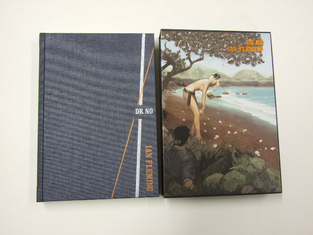 Fleming, Ian - Doctor No (Dr.) (Published in by The Folio Society in 2017. Bound in blocked cloth. Set in Miller Text with Folio. 256 pages. Frontispiece and 6 colour illustrations. Printed slipcase. 9" x 6.25". The third in the Folio Society's best-selling James Bond series, this edition once more employs the talents of Fay Dalton, whose illustrations bring to life the glamour and danger of Bond's action-filled mission in Jamaica, and who has provided seven stunning images and a slipcase image portraying the unforgettable Honeychile Rider. With a torture-loving villain, a feisty female lead and death-defying feats, including a battle with a giant squid, Dr No sees Fleming revelling in the dramatic appeal of his indestructible hero. Having recently recovered from his near-fatal poisoning at the end of From Russia with Love, Bond is sent to Jamaica for a working holiday. To his annoyance, his mission – to investigate the disappearance of two fellow MI6 operatives – sounds 'rather like the soft life'. But the elegant Strangways and his pretty young colleague have not eloped, as M believes. Dispatched by sinister assassins, their bodies lie in a single coffin at the bottom of the Mona Reservoir. And so Bond enters an exotic and perilous world, manipulated by the sadistic Dr Julius No from the desolate Crab Key island. )