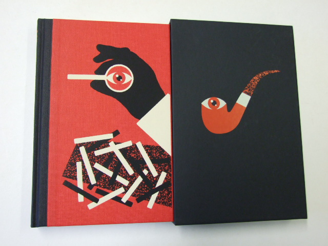 Doyle, Arthur Conan - The Selected Adventures and Memoirs of Sherlock Holmes (Published in by The Folio Society in 2018. Illustrated by Max Löffler. Introduced by Michael Dirda. A stunning new Folio Society collection of Arthur Conan Doyle's most compelling cases, The Selected Adventures and Memoirs of Sherlock Holmes is given a contemporary twist with Max Löffler's unsettling illustrations. 'You must have started early and yet you had a good drive in a dogcart, along heavy roads, before you reached the station.' So declares literature's best-loved detective upon greeting a new client in the sitting room of 221b Baker Street. Amazed by his powers of deduction, the stranger reveals her story and a new adventure commences. Quarter-bound in blocked cloth with blocked cloth case sides Set in Laurentian with Clarendon display. 280 pages. Frontispiece and 8 black & white integrated illustrations. Blocked slipcase. 9.5" x 6.25". )
