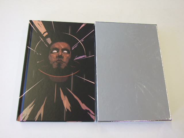 Clarke, Arthur C - 2001: A Space Odyssey (Published in by The Folio Society in 2016. Bound in printed art paper and blocked in holographic foil with a design by the artist. Metallic slipcase. Set in Cartier Book with Univers for display. 240 pages. Frontispiece and 6 colour plates. 9.5" x 6.25". Every bit as ambitious and prophetic as the film that shared its inception, Arthur C. Clarke's novel remains a towering science-fiction classic. This is the first illustrated edition. Developed from Arthur C. Clarke's short story 'The Sentinel' and brainstormed together with legendary film director Stanley Kubrick, 2001: A Space Odyssey(1968) has had an indelible impact on both cinema and genre literature. Written alongside the screenplay, the book stands on its own merits as a visionary work: a powerful exploration of space, artificial intelligence and the destiny of humanity. This edition includes the foreword written jointly by Clarke and Kubrick, as well as Clarke's 'Back to 2001' preface written in 1989. Michael Moorcock, a long-standing colleague of Clarke's and an award-winning author, has provided a new introduction revealing much of his friend's personality, as well as casting a new light on the fractious relationship between Clarke and Kubrick. For this first illustrated edition, Joe Wilson has contributed seven colour illustrations that capture the book's vision of 2001's remarkable future, while the binding shimmers with holographic foil. For all its scientific realism, 2001: A Space Odyssey is also an exciting and entertaining read. Particularly in comparison to the film, it rattles along at a thrilling pace; Clarke moves us swiftly from the appearance of the first monolith on prehistoric earth – which so startles and unnerves the man-apes who are the ancestors of the human race – to a chilling episode on board the Discovery, when a mission to Saturn is jeopardised by the increasing mental instability of the ship's computer, HAL 9000. The final section of the book, in which the isolated David Bowman explores a 'Grand Central Station of the Galaxy', is a frightening, extraordinary and undoubtedly joyful trip to the very limits of human experience. )