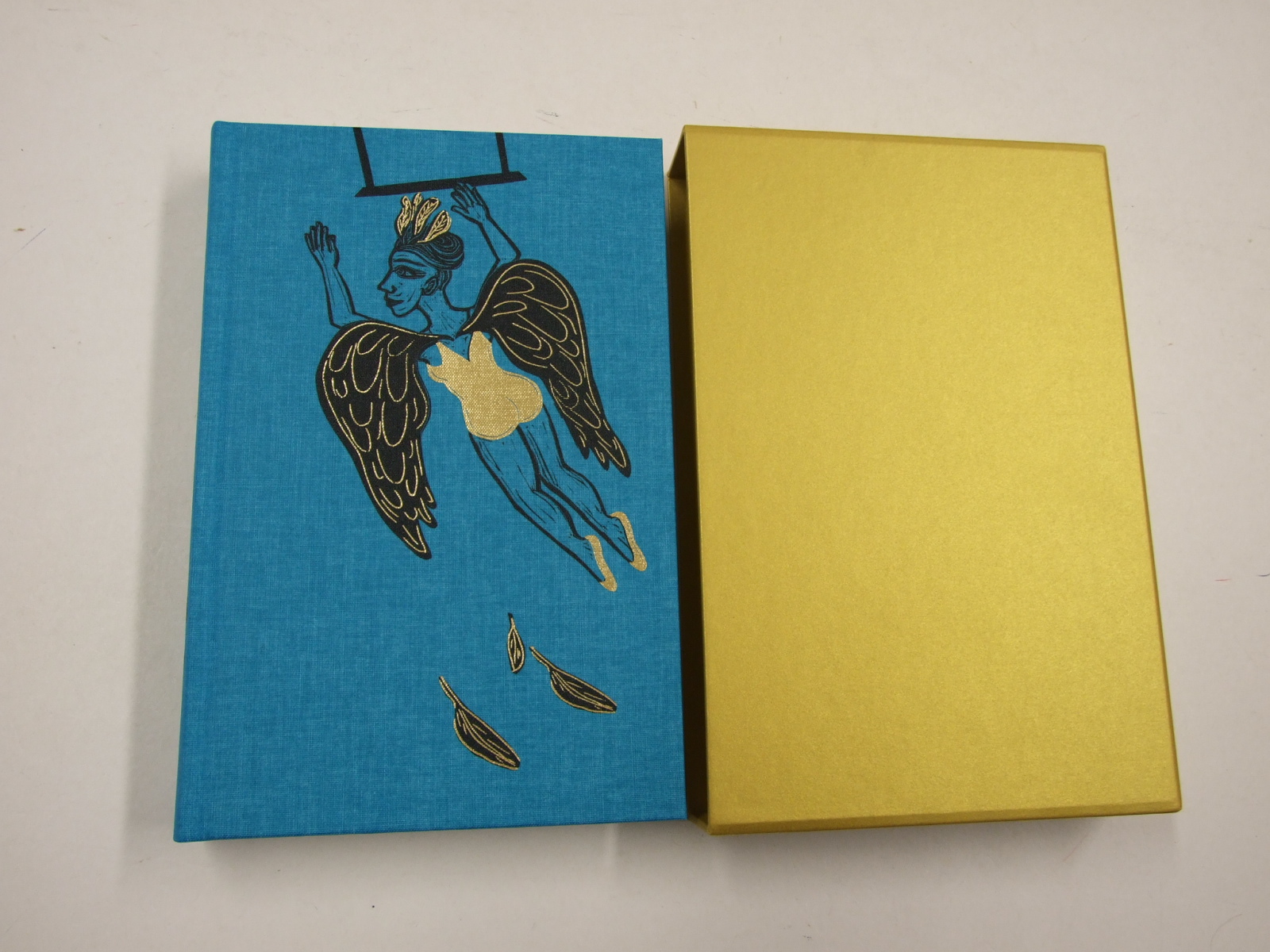 Carter, Angela - Nights at the Circus (Published in by The Folio Society in 2021. Nights at the Circus, Angela Carter's tale of love and magic, circuses and lies, receives its first illustrated Folio Society edition. Royal Academician Eileen Cooper provides extraordinary linocut images, Sarah Waters introduces. Bound in printed and blocked cloth. Set in Laurentian. 376 pages. 9 colour and 13 black & white integrated illustrations. Gold slipcase. 9.5" x 6.25". Nights at the Circus tells the story of Sophie Fevvers, half woman, half swan, all super star, and journalist Jack Walser’s quest to find the truth behind her unlikely legend. Stuffed to the gills with Angela Carter's wildly original storytelling, gorgeously slippery language, and all the pleasures and horrors of a fairy tale, this first illustrated edition features nine exclusive colour illustrations and a set of black-and-white chapter headings by celebrated printmaker Eileen Cooper. A Royal Academician, Cooper has credited fairy tales, mythology and the female figure as core inspirations for her work, making her the perfect artist to bring Carter's lush imagery to life. Sarah Waters's novel Tipping the Velvet trod the same theatrical boards as Nights at the Circus, and here she provides an introduction celebrating Carter's 'masterpiece' and the author's unique power to 'unsettle as well as to inspire and console'. This is a sensational edition of one of the 20th century’s greatest literary spectacles. )