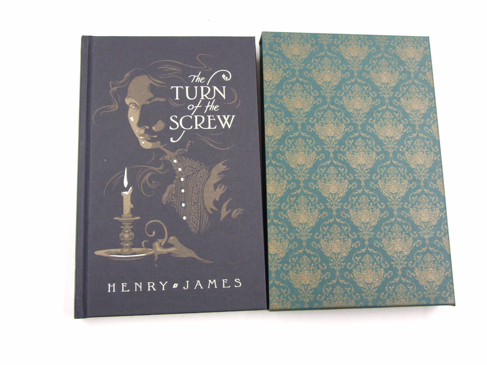 James, Henry - The Turn of the Screw (Published in by The Folio Society in 2022. One of the most celebrated ghost stories of all time, Henry James’s The Turn of the Screw is newly introduced by novelist and essayist ColmToibin, and beautifully illustrated by Audrey Benjaminsen for this superb Folio Society edition. Bound in printed and blocked textured paper. Set in Columbus. 168 pages. Frontispiece and 5 full-colour illustrations. Integrated black & white decorations, chapter headings and tailpieces. Printed endpapers. Printed slipcase. 8.75" x 5.5". It is Christmas Eve. A group of friends gathers by a roaring fire in an old country house, when one of their party promises a tale that: 'Nobody but me, till now, has ever heard. It’s quite too horrible.' Widely regarded as one of the greatest ghost stories of all time, The Turn of the Screw instantly grips the reader and doesn't let go until the final chilling cliffhanger. Newly introduced by ColmToibin, whose writings on James are essential reading, our gorgeously foreboding collector's edition is illustrated by renowned fantasy artist Audrey Benjaminsen, who plays on the dark heart of this disturbing and timeless tale with her ethereal and unsettling illustrations. )