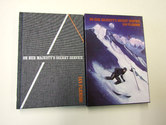 Fleming, Ian - On Her Majesty's Secret Service (Published in by The Folio Society in 2020. Bound in blocked cloth. Set in Miller Text with Folio Bold Condensed as display. 272 pages. Frontispiece and 6 colour illustrations. Pictorial slipcase. 9" x 6.25" . Fay Dalton's irresistible illustrations make this edition of Ian Fleming's On Her Majesty's Secret Service a delectable treat. Secret agent James Bond returns in the tenth book in the endlessly popular Folio Bond series. On Her Majesty's Secret Service is Fleming at the height of his powers, every page dripping with action, romance and tragedy, and his complex and enduringly compelling hero sits at the heart of it all. This is also the second book in the 'Blofeld trilogy', bringing Bond and his enemy face to face for the first time – with explosive results. Artist Fay Dalton continues her brilliant work on the series, bringing us a vision of Bond that captures all the glamour and the grit of Fleming's world. For this edition she has produced seven thrilling colour illustrations, as well as a fantastic image for the illustrated slipcase. The elegantly understated binding design nods to both the location of Bond's latest adventure and the agent's love of smart suits. )