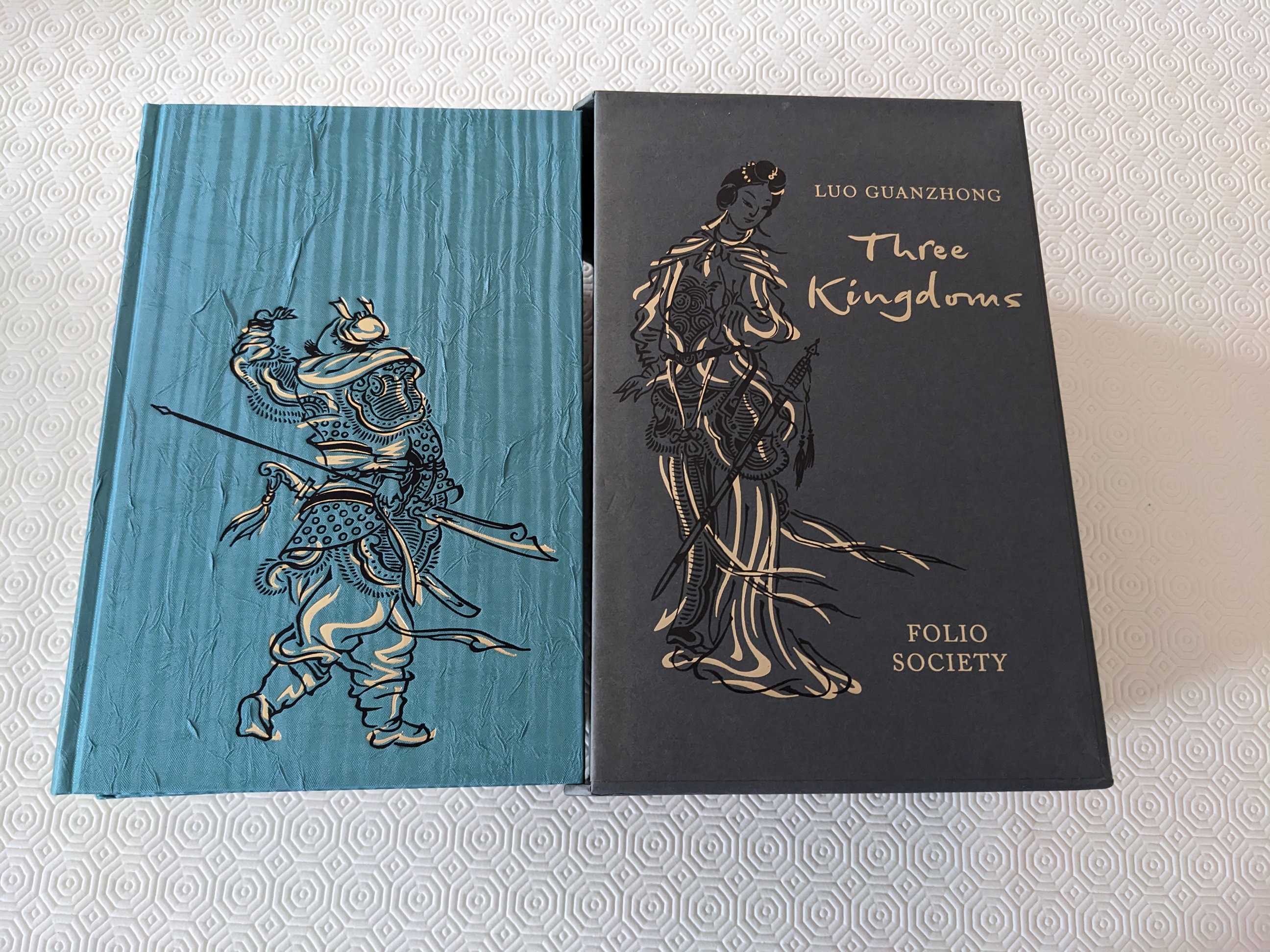 Published in United Kingdom by Folio Society. 2013. First Thus. 4 Fine Hardbacks. No inscriptions or bookplates. Good slipcase. Two invh tear to bottom corner of slipcase. Slight fading to panels of slipcase. Introduced by Ma Jian. Translated by Moss Roberts. Bound in vendome cloth. Blocked with images from an 1883 edition of the novel, redrawn by Neil Gower. Set in Swift. 1,664 pages in total with 280 black and white illustrations. Book size: 11" x 7.25". In Chinese culture, the era of the Three Kingdoms (AD 168–280) has achieved the status of legend. Retold in novels, celebrated in operas and echoed in modern media, from television to video games, it permeates Chinese consciousness like no other. It was an era of chaos, of conflicts so bloody that the country's population fell by almost 50 million. But it was also a time of ideological change, with the rise of Buddhist ideals and Taoist principles that rejected the tumult and violence of the warring dynasties. And it produced the country's first professional painters, such as Cao Buxing, often called 'the father of Buddhist painting'. It is from this rich strand of history that Luo Guanzhong's Three Kingdoms emerged. Written in the 14th century, this remarkable novel is one of the great classics of Chinese literature. It is among the most beloved works of literature in East Asia, with an influence in China comparable to that of Shakespeare in the British Isles. While attributed to Guanzhong, it is as much the product of 11 centuries of oral tradition as the fruit of one author's labour, encompassing and cementing the quasi-mythical status of the era. Introducing this edition, Chinese author-in-exile Ma Jian describes Three Kingdoms as 70 per cent history and 30 per cent fiction. The only English language illustrated edition in print. This edition features 280 integrated woodcuts from a 19th-century edition, sourced with the kind assistance of Frances Wood, Curator of Chinese Collections at the British Library. They were probably created in the workshops that thrived throughout the Qing dynasty (1644 to 1911), when the visual arts were prized as a means of reaffirming social values. There are 240 dramatic scenes and 40 character portraits. The books are bound in shimmering cloth, blocked with four key figures redrawn by Neil Gower: Liu Bei (Xuande), Lady Mi, Zuo Ci and Deng Ai. Lady Sun, the daughter of a warlord and third wife of Liu Bei, appears on the slipcase.