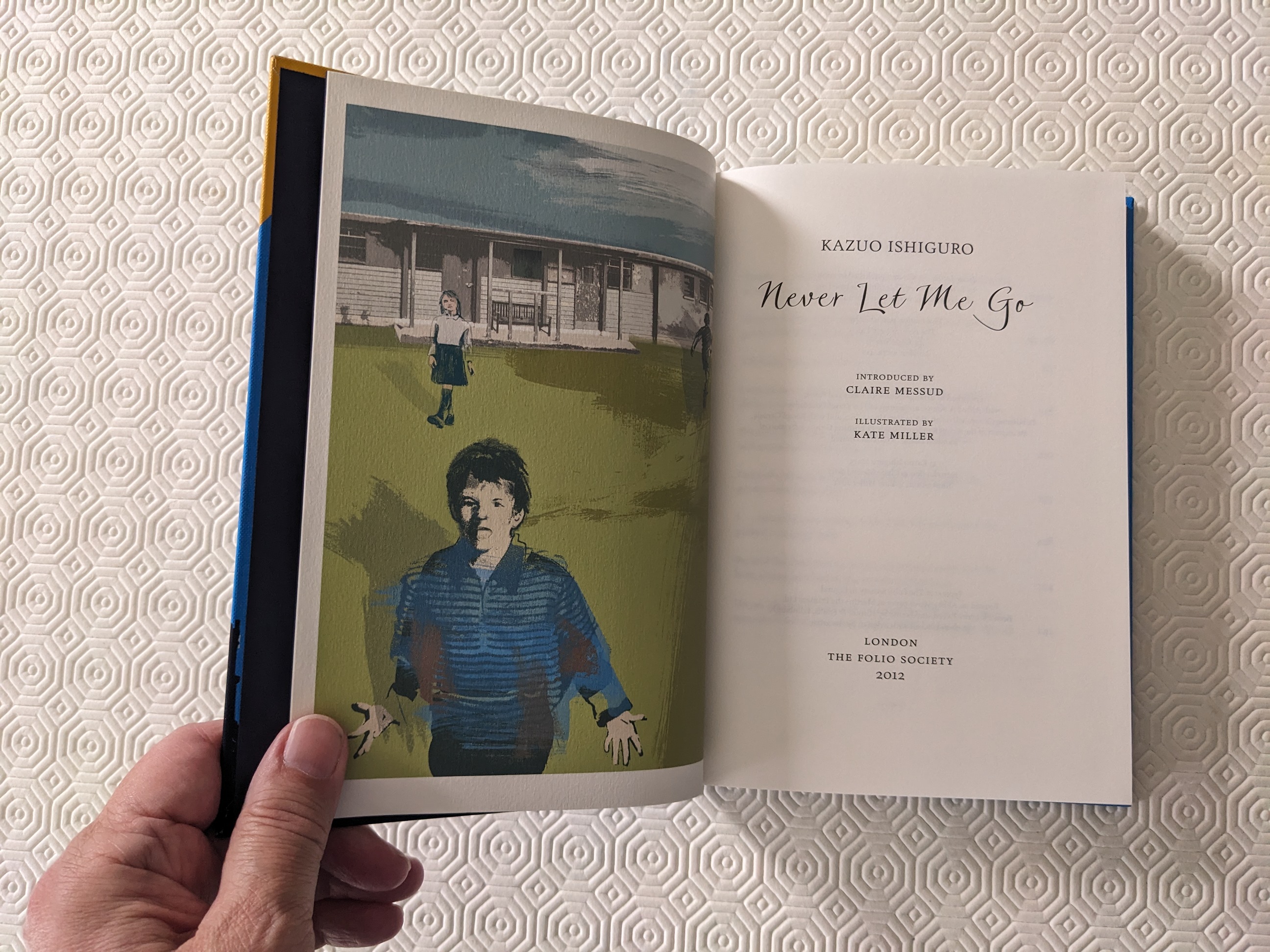 Published in London by Folio Society. 2012. First Thus. Fine Hardback. No inscriptions or bookplates. Fine slipcase. Bound in cloth. Blocked with a design by Kate Miller. Set in Figural. 288 pages. Frontispiece and 8 colour illustrations. Book size: 9" × 6.25". Shortlisted for the Man Booker Prize in 2005, this is an unforgettable, poignant story by the author of The Remains of the Day. This Folio edition contains a new introduction by Claire Messud, award-winning author of The Emperor's Children. She describes Ishiguro's novel as belonging to a 'thin but intense literary vein that runs from King Lear to Beckett and beyond, works that lay bare the human condition in its stark fundamentals … Without fanfare or Dostoevskian histrionics, Never Let Me Go joins the ranks of these abiding works.' This is artist Kate Miller's first commission for The Folio Society. Her beautiful, multi-layered illustrations have been praised by Kazuo Ishiguro as 'subtly gorgeous and full of poignancy'.