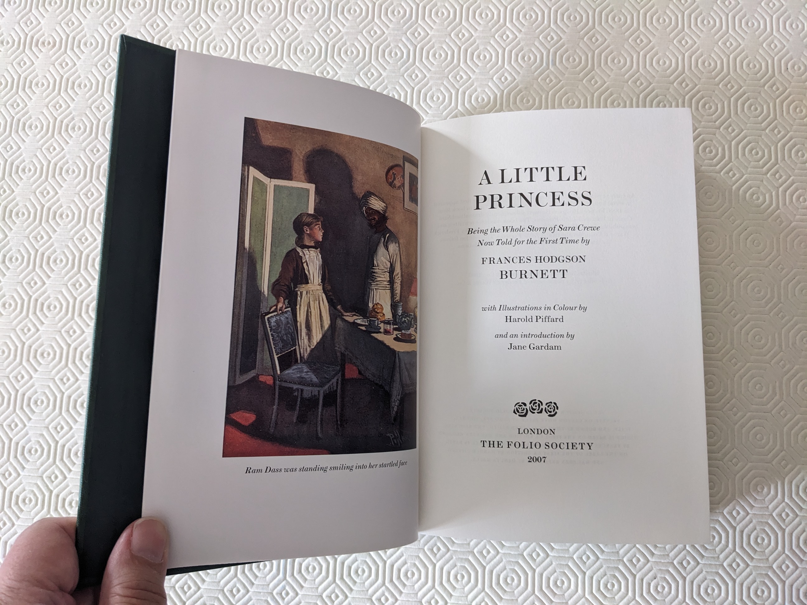 Published in London by Folio Society. 2007. First Thus. Fine Hardback. No inscriptions or bookplates. Very Good+ slipcase. Some marks to panels of slipcase. Introduced by Jane Gardam. Illustrated by H. Piffard. Bound in cloth, with a front board inset label based on the first UK edition by Harold Piffard. Set in Scotch Roman. 256 pages; frontispiece and 7 full-page colour illustrations. Sara Crewe is treated like a little princess by her adoring, wealthy father: he buys her everything she likes, her clothes are of the best, and she even has a French maid at Miss Minchin's select seminary in London. Yet it is Sara's ability to 'pretend' that most enraptures her classmates – the dull-witted but loyal Ermengarde, spoiled little Lottie and the unfortunate scullery-maid Becky. When her father dies with his business ventures in ruins, Sara is forced to work as a maid herself by the furious Miss Minchin. Yet, no mistreatment can cloud her powers of 'pretending', and it is in misfortune that Sara discovers that 'Whatever happens … cannot alter one thing. If I am a princess in rags and tatters, I can be a princess inside'. First published in serial form in 1887, Frances Hodgson Burnett rewrote the story first as a play and then as the extended novel we enjoy today. Elegantly written and filled with unforgettable characters, the book was an immediate success and has remained in print ever since, perennially popular with adults and children and often televised or filmed. Harold Piffard illustrated the first full-length edition, published in 1905, with seven full-colour plates and a frontispiece. His beautiful watercolours perfectly capture the little attic where Melchisedec the rat waits for crumbs and Sara pretends that she and Becky are brave prisoners in the Bastille. Reproduced with loving attention to the subtle colouring of the original illustrations, this is a gorgeous edition of a childhood favourite.