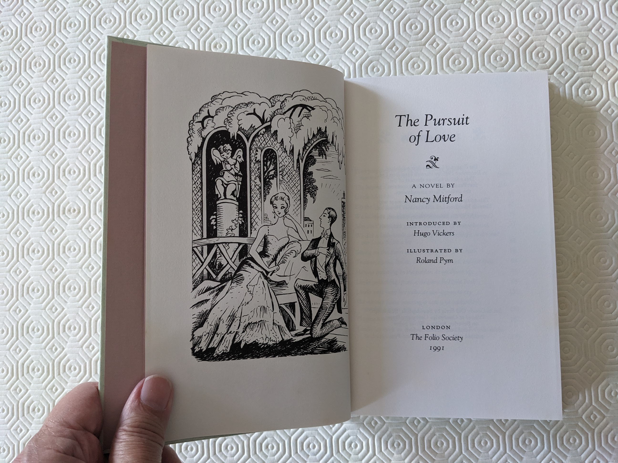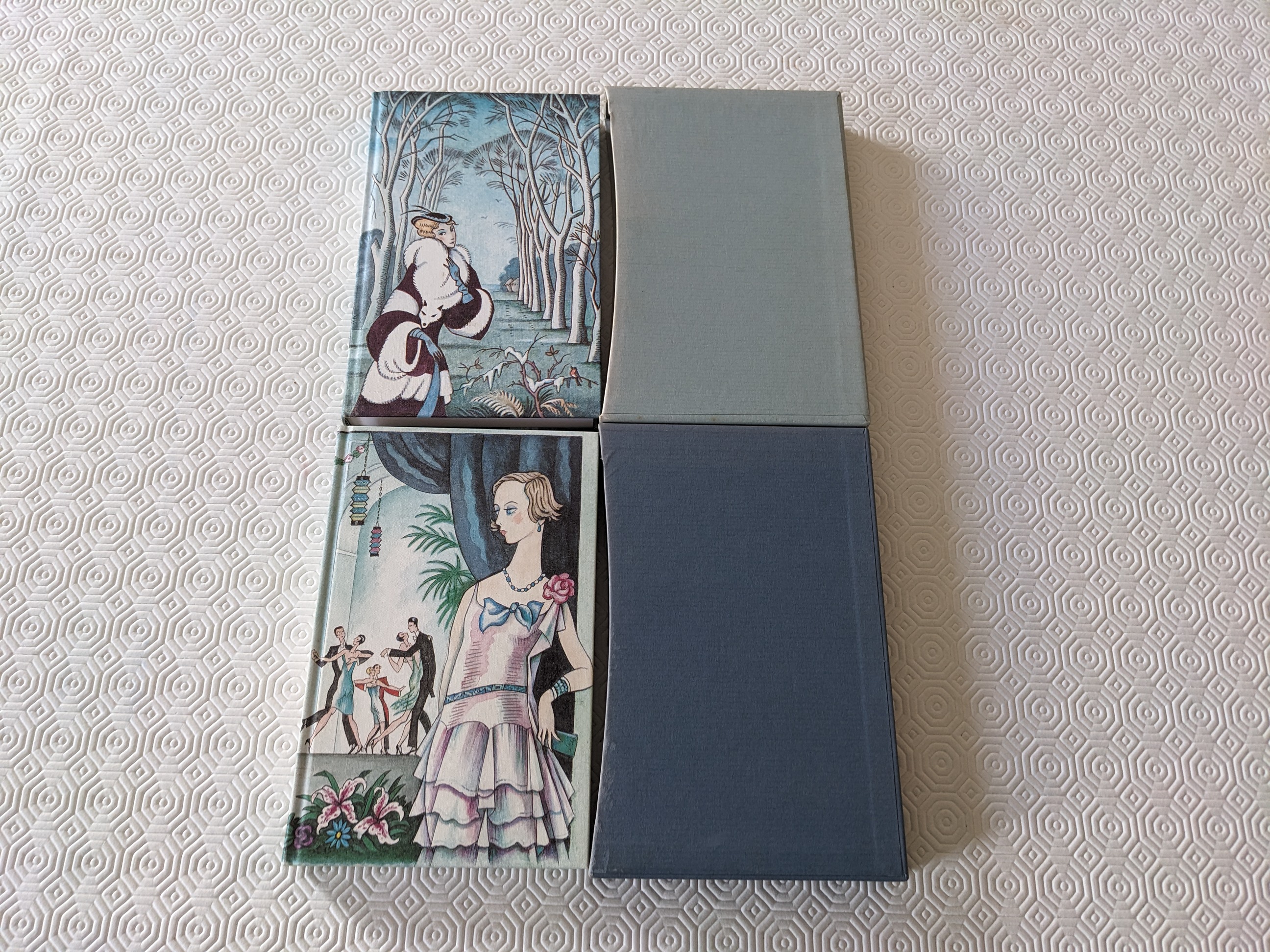 Published in London by Folio Society. 1991. First Thus. Near Fine Hardbacks. Page edges slightly marked. Previous owner name on front free endpaper of Cold Climate; previous owner bookplate on front free endpaper.of Pursuit of Love. Very Good slipcase. Some marks and fading to panels of slipcases. Illustrated by Roland Pym. Both first printings; Pursuit of Love 1991, Cold Climate 1992.