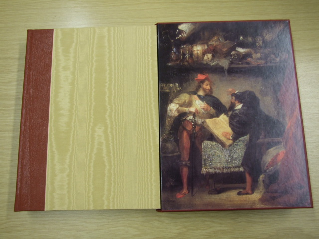 Goethe, Johann Wolfgang von - Faust : Parts One and Two (Published in by The Folio Society in 2005. Bold in theme, rich in incident and cosmic in its vision, Faust is Goethe's masterpiece and one of the most significant works of Western literature. In it, he transformed the medieval legend of the daring magus who sells his soul to the Devil, creating Faust anew as a modern 'superman' who believes himself to be beyond good and evil. Faust mirrors the age of revolution through which Goethe lived, intertwining his own intellectual and spiritual journey with that of his rebellious hero to produce a magnificent evocation of the terrors and exhilaration of human creativity. Goethe himself remarked that Eugene Delacroix was 'just the man to dive into Faust and extract from it probable pictures … full of intellect and expression'. Whether it is the vigorous winged figure of Mephistopheles, Faust's first encounter with his devilish accomplice, wild rides through the night, or Faust's poignant parting from Gretchen, Delacroix's compelling lithographs brilliantly convey the sensuous and diabolic sentiment of Goethe's narrative. Their publication in Faust, Part I in 1828 inaugurated the Romantic style in book illustration, single-handedly creating the tradition of the artist-illustrator who actively participates in the making of a book. In this stunning edition, Part II is illustrated with classically inspired paintings from Goethe's lifetime and together they create a unique edition of one of the great dramatic works of European literature. Illustrated by Eugene Delacroix. )