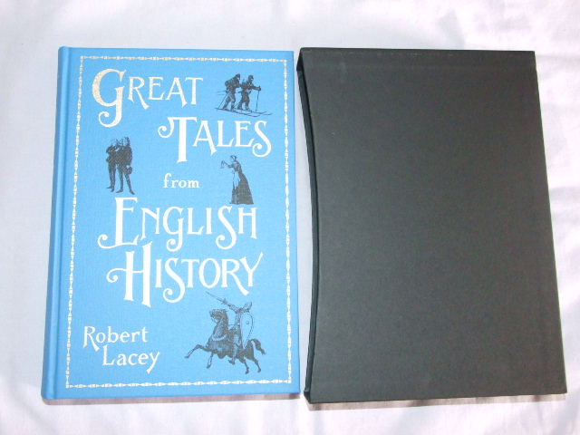 Lacey, Robert - Great Tales from English History (Published in by The Folio Society in 2008. New preface by the author. Bound in cloth, printed and blocked with a design by Neil Gower. 384 pages with 67 colour and black & white illustrations. Size: 10 ins x 6.75 ins. Great Tales from English History takes the reader on an exhilarating tour of the greatest landmarks in English history, from Julius Caesar's arrival on British shores on 26 August 55 BC to the discovery of DNA by Watson and Crick nearly 2,000 years later. This superb illustrated edition unites 101 key tales from Robert Lacey's acclaimed three-volume series, in a new selection containing famous events, such as the Great Fire of London, as well as others that are less well known – for example, the exploits of the 15-year-old Nelson in the Arctic. Here is King Canute's attempt to turn back the waves; the mysterious murder of Thomas Becket in Canterbury Cathedral; Wat Tyler and the Peasants' Revolt; Thomas Clarkson and his fight against slavery; the dramatic religious conversion of John Wesley; and the heroism shown at Dunkirk in 1940. In the brilliant storytelling tradition of Our Island History, combined with the latest and most accurate research, this is history as it should be told. Read this outstanding book and experience the drama of English history through the great personalities, battles, discoveries, dramas and tragedies that have moulded the nation. )