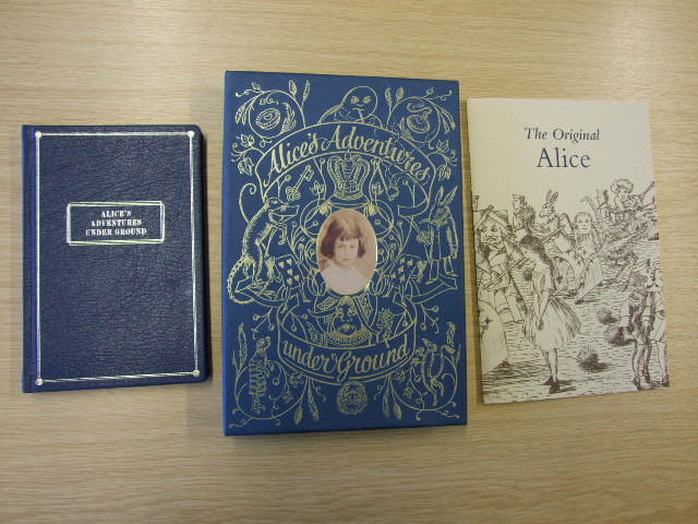 Carroll, Lewis - Alice's Adventures Under Ground (Alice in Wonderland) Limited Edition (Published in by The Folio Society in 2008. Bound in full leather, all edges gilt, 90pp, a facsimile of Carroll's original, illustrated manuscript, number 57 from a limited edition of 3750. Housed in a decorative box, with the accompanying title by Sally Brown, The Original Alice, 32pp, 2008. )