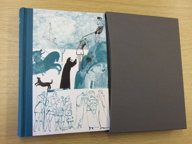 Cooper, Susan - Over Sea, Under Stone (Published in by The Folio Society in 2011. New preface by the author. Book Illustrated by Laura Carlin. Quarter-bound in buckram with Modigliani paper sides. Printed with a design by Laura Carlin. Set in Elysium with Clairvaux display. Frontispiece and 7 colour illustrations. Book Size: 9" × 6.25". 216 pages. Simon, Jane and Barney Drew know that their holiday in Cornwall will be a wonderful one. The seaside village of Trewissick is filled with fishermen to chat to, and the house they are staying in has secret passages, stairways and even a hidden attic to explore. Best of all, they have their mysterious, enthralling Great-Uncle Merry all to themselves for four whole weeks. When they discover an ancient manuscript hidden in the house, it seems a harmless excitement, but first a burglary, and then a frightening moonlit encounter among the standing stones on the headland reveal that the children are not the only ones interested in the parchment. All at once Trewissick seems to wear a different face: the friendly fishermen, helpful vicar and motherly housekeeper may not be all they seem. It may be that not even Great-Uncle Merry can protect the children from the terrifying figures of the Dark. The first book in the award-winning The Dark is Rising sequence, Over Sea, Under Stone also stands alone as a thrilling mixture of adventure and fantasy. Its theme is the eternal battle between the Light and the Dark, which Merry tells the children 'goes on all round us all the time, like two armies fighting'. Susan Cooper has contributed a new preface to this edition, in which she explains that the original impetus for this story was a literary competition (a catalyst that soon vanished as the novel took on its own life). She has also been involved in choosing the illustrator: Laura Carlin's unerring sense of colour and eye for the uncanny have created memorable, evocative images of both the characters and landscape. )