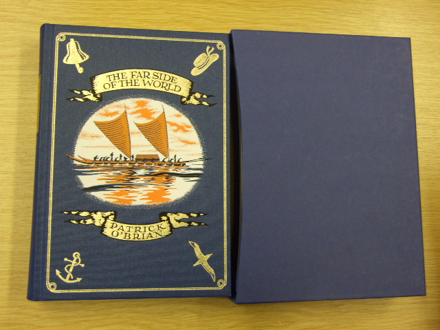 O'Brian, Patrick - The Far Side of the World (Published in by The Folio Society in 2011. Bound in buckram. Blocked with a design by Neil Gower. 324 pages. 12 pages of colour and black & white plates. Book size: 9" x 6.25". )
