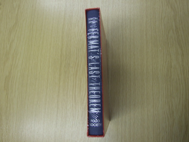 Singh, Simon - Fermat's Last Theorem (Published in by The Folio Society in 2011. Introduced by Ian Stewart. Quarter-bound in cloth with Modigliani paper sides. Set in Baskerville. 264 pages. Frontispiece. 16 pages of colour and black & white plates. Book size: 9.5" × 6.25". On 23 June 1993, a rapt audience gathered in the main auditorium of the Isaac Newton Institute in Cambridge, packed the corridors outside and peered through the window. Word had gone around that a British mathematician called Andrew Wiles was going to demonstrate a proof for the most famous problem in mathematics: Fermat's Last Theorem. To stunned silence and then deafening applause, Wiles did just that. Though his work contained a flaw that would take a further two years to correct, he had finally solved a conundrum that had defeated mathematicians for over 350 years. Acclaimed science writer Simon Singh brilliantly reconstructs one of the greatest intellectual struggles in history, writing with a clarity that will enable any reader to appreciate the difficulties of the problem and the beauty of the solution. He describes the successive figures who brought humanity closer to the answer: Evariste Galois, who developed the concept of group theory before being killed in a duel at the age of 20, Yutaka Taniyama and Goro Shimura, the Japanese mathematicians who made crucial advances on elliptic equations and modular forms in the 1950s, and Andrew Wiles himself, who first determined to crack Fermat's theorem aged ten. What emerges is a deeply moving story of elation and despair, near misses and heroic achievement. Mathematician and author Ian Stewart has contributed a new introduction to a book he calls 'one of the classics of modern science writing'. )