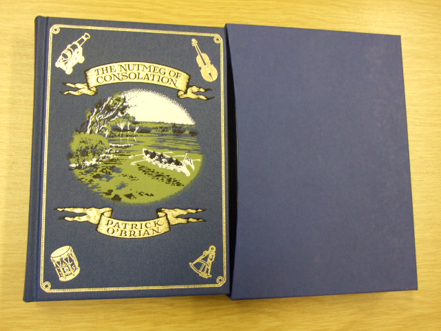 O'Brian, Patrick - The Nutmeg of Consolation (Published in by The Folio Society in 2012. Bound in buckram. Blocked with a design by Neil Gower. 242 pages. 12 pages of colour and black & white plates. Book size: 9" x 6.25". )