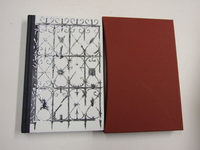 Carter, Angela - The Bloody Chamber and Other Stories (Published in by The Folio Society in 2012. Quarter-bound in buckram. Modigliani paper sides. Blocked and printed with a design by Igor Karash. Igor Karash won the second House of Illustration/Folio Society Illustration Award for his work on Angela Carter's seminal retellings of fairy tales. 168 pages. Set in Sabon. Frontispiece and 6 colour illustrations. Book size: 9.5" × 6.25". Angela Carter had recently finished translating Charles Perrault's works when she began her own virtuoso retellings of classic fairy tales. In this astonishing collection, first published in 1979, familiar stories become seductive, enchanting and terrifying. In the title story, Bluebeard is a sado-masochist who lures his inexperienced bride to his castle on the coast of Brittany – but is defeated by a most unexpected adversary. Subversive twists abound: in 'The Werewolf', a retelling of 'Little Red Riding Hood', a girl hacks off a wolf's paw, only to find it turning into a warty, withered old hand that she recognises as her grandmother's. Carter's women are more likely to outwit their attackers than fall prey to them – as the heroine of 'The Company of Wolves' puts it, 'she knew she was nobody's meat'. )