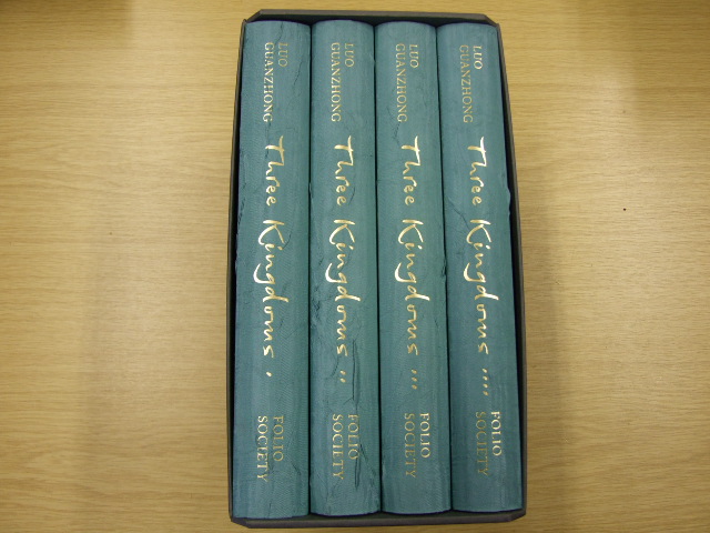 Luo Guanzhong - Three Kingdoms (Published in by The Folio Society in 2013. Introduced by Ma Jian. Translated by Moss Roberts. Bound in vendome cloth. Blocked with images from an 1883 edition of the novel, redrawn by Neil Gower. Set in Swift. 1,664 pages in total with 280 black and white illustrations. Book size: 11" x 7.25". In Chinese culture, the era of the Three Kingdoms (AD 168–280) has achieved the status of legend. Retold in novels, celebrated in operas and echoed in modern media, from television to video games, it permeates Chinese consciousness like no other. It was an era of chaos, of conflicts so bloody that the country's population fell by almost 50 million. But it was also a time of ideological change, with the rise of Buddhist ideals and Taoist principles that rejected the tumult and violence of the warring dynasties. And it produced the country's first professional painters, such as Cao Buxing, often called 'the father of Buddhist painting'. It is from this rich strand of history that Luo Guanzhong's Three Kingdoms emerged. Written in the 14th century, this remarkable novel is one of the great classics of Chinese literature. It is among the most beloved works of literature in East Asia, with an influence in China comparable to that of Shakespeare in the British Isles. While attributed to Guanzhong, it is as much the product of 11 centuries of oral tradition as the fruit of one author's labour, encompassing and cementing the quasi-mythical status of the era. Introducing this edition, Chinese author-in-exile Ma Jian describes Three Kingdoms as 70 per cent history and 30 per cent fiction. The only English language illustrated edition in print. This edition features 280 integrated woodcuts from a 19th-century edition, sourced with the kind assistance of Frances Wood, Curator of Chinese Collections at the British Library. They were probably created in the workshops that thrived throughout the Qing dynasty (1644 to 1911), when the visual arts were prized as a means of reaffirming social values. There are 240 dramatic scenes and 40 character portraits. The books are bound in shimmering cloth, blocked with four key figures redrawn by Neil Gower: Liu Bei (Xuande), Lady Mi, Zuo Ci and Deng Ai. Lady Sun, the daughter of a warlord and third wife of Liu Bei, appears on the slipcase. )