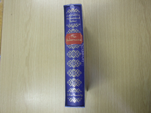 Zahiruddin Muhammad Babur - The Baburnama (Published in by The Folio Society in 2013. Quarter-bound in leather with Modigliani paper sides and gilded top page edges. Blocked and printed with a design by Neil Gower. Set in Granjon. 608 pages. Frontispiece and 48 pages of colour plates. All illustrations taken from the British Library manuscript of the Baburnama (Or. 3714) and are copyright of The British Library Board. Book size: 11" × 7.25". One of the classics of world literature, in a fine edition introduced by J.P. Losty and Salman Rushdie. With 49 pages of colour plates of exquisite Mughal miniatures commissioned by Akbar the Great, Babur's grandson. Zahiruddin Muhammad Babur (1483–1530) was the founder of the Mughal Empire in India. He was also the author of the earliest known work of autobiography in Islamic literature. In frank and candid prose Babur describes his accession to the throne at the age of 12; fleeing his birthplace of Fergana to avoid murderous relatives; his dramatic capture of Kabul, the city he would love all his life; and his conquest of Hindustan. This is both a classic memoir and a fascinating insight into the foundation of one of the world's great empires. )