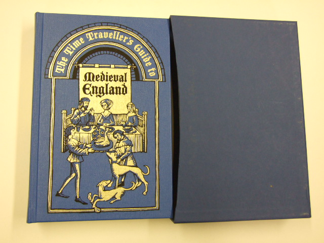 Mortimer, Ian - The Time Traveller's Guide to Medieval England (Published in by The Folio Society in 2013. Introduced by Christopher Dyer. Illustrated by Robert Venables. Funny, learned and frank, this book explores what life was really like in the Middle Ages. With specially commissioned illustrations by Robert Venables. New preface by the author. Bound in buckram. Blocked with a design by Robert Venables. Set in Adobe Caslon with Blackmoor display. 384 pages. Frontispiece and 9 colour illustrations. Book size: 9.5" x 6.25". Funny, learned and frank, this is the book to read if you want to know what it was really like to live in the Middle Ages. For here you can explore the medieval era as you would a foreign country – its customs and dress codes, sights to see and who to consult if you are ill. Ian Mortimer blends in-depth scholarship with literary flair as he leads the reader on a fascinating journey through the streets and lanes of 14th-century England, detailing the landscapes and towns, the people and their homes, their pastimes and their laws. In 'What to Eat and Drink', he describes dinner in a noble household: 'on a fish day you might be served a first course of lampreys baked in vinegar, pepper, ginger and cinnamon;' and he reveals the ingredients of 'pottage', the staple food of peasants. In 'What to Do' he notes the people's love of music and the 'disguising games' beloved by Edward III, who once took part himself by dressing as a giant bird. Jousting is essential viewing, though not for the faint-hearted: 'In case you have any doubt about the level of danger, let it be stated unequivocally. Jousting is dangerous.' 'Health and Hygiene' describes treatments that anticipate modern methods, such as trusses to repair hernias, and others which, mercifully, have been abandoned, such as the cure for quinsy (an abscess in the throat) that involves flaying and roasting a cat with the grease of a hedgehog and the fat of a bear, before anointing the sufferer. Robert Venables's absorbing illustrations depict these diverse aspects of day-to-day life, from cooks at work to a scene at the gallows. This edition also includes a newly commissioned map of Medieval England. )