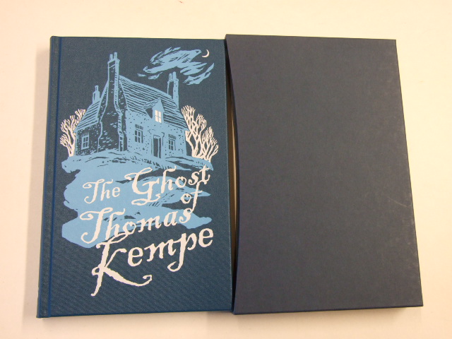 Lively, Penelope - The Ghost of Thomas Kempe (Published in by The Folio Society in 2014. Illustrated by Pam Smy. With a new introduction by the author, this brilliantly funny ghost story for children features integrated illustrations by artist Pam Smy. Someone is causing havoc in East End Cottage, and for once it isn't James. When strange scrawled notes start appearing all over his new family home in the old Oxfordshire village of Ledsham, 10-year-old James seems the obvious culprit. But only he knows the troublemaker's true identity – Thomas Kempe, a petulant 17th-century sorcerer who has taken up residence as a poltergeist in his new bedroom. And to make matters worse, no one will believe him. So, to avoid missing out on pocket money and pudding for the rest of his life, it will be up to James to find out why Thos. Kempe Esq., Sorcerer, has returned, and how to get rid of him. 'The Ghost Of Thomas Kempe is a glorious reminder of the fun of being a boy' . GUARDIAN. The Ghost of Thomas Kempe book. Bound in buckram, blocked with a design by Pam Smy. Set in Adobe Caslon with Blackadder display. 168 pages with 26 black & white illustrations. Printed endpapers. 9" × 5.75". More than just a simple ghost story. First published in 1973, and winner of the Carnegie Medal, The Ghost of Thomas Kempe is a brilliantly funny ghost story for children, from one of the great writers of modern British fiction. But, as Penelope Lively explains in her new introduction that there is 'intriguing hidden ballast' to James's quest to rid Ledsham of its troublesome ghost. Uncovering dusty diaries and investigating local folklore, James delves deeper into the past and slowly comes to realise that there is an undiscovered world around him, one filled with the memories of lives lived before his own. Lively's own interest in social history and memory, which suffuses much of her later adult fiction, informs James's own adventure as he begins to realise his place in the passage of time, and that we can't all be ten forever. Pam Smy has created over two dozen whimsical illustrations for this edition. Characters such as Mrs Verity, Tim the dog and Bert – the builder-cum-exorcist – are brought vividly to life. Many of the images are integrated with the text, whisking the reader along with James around the streets of Ledsham and the beautiful Oxfordshire countryside. Penelope Lively recalls the humble origins of Thomas Kempe. An extract from the author's new introduction to this edition. The Ghost of Thomas Kempe was published in 1973. It is over 40 years since it was written – by some alter ego, or so it seems. Read today, it is familiar to me, but also strange; I couldn't write like that now – indeed, writing for children left me long ago, to my regret. But what is intriguing, reading with some detachment, is that I can recognise with absolute clarity the prompts, the sources, for the story, and they are just the same as those for adult fiction, later in a writing life. Inspirational triggers, for me, have been a curious marriage of something read, something seen or found, and all the encircling clamour of life as lived. The something found was the stem and bowl of a clay pipe. Thomas Kempe's clay pipe, I suppose. Many bits of clay pipe, indeed. We were living at the time in a 16th-century former rectory; the garden there threw up fascinating domestic detritus – broken crockery from medieval potsherds to Victorian flowered china, the curved glass bases of 18th-century wine bottles, and all those clay pipes. Gardening acquired an extra level of interest. Clay pipes, I learned, date from the end of the 16th century to the 19th, and vary from decade to decade, so that archaeologists can often use them to date a level of excavation. The stems are extremely brittle; the past must echo to expletives as yet another damn pipe fell to bits. I collected all this stuff – a cake tin full of garden archaeology which I still possess – and at some point the ghost of Thomas Kempe, or someone like him, came smoking out of one of those pipes. From the Folio Society description. )