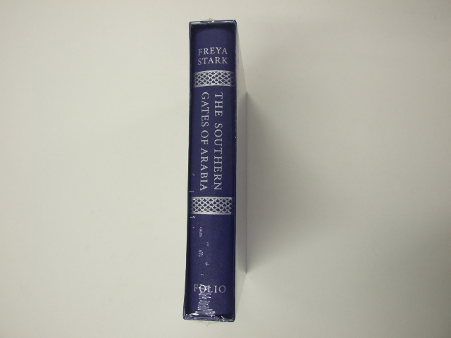 Stark, Freya - The Southern Gates of Arabia (Published in by The Folio Society in 2014. Introduced by Sara Wheeler. Freya Stark's trailblazing account of her 1934–35 journey into what is now modern Yemen confirmed her status as one of the greatest adventurers and travel writers of the 20th century. The Southern Gates of Arabia. 'A mistress of endurance and fortitude in travel and in the suffering of terrors and danger.' This testament from the Sayyid family of southern Arabia befits Freya Stark, one of the most courageous travellers of the 20th century. This is her pioneering 1934–5 journey into present-day Yemen, which was, and still is, one of the wildest and most inaccessible parts of the region, where 'the ancient geographers lead one more competently than modern map-makers'. The Southern Gates of Arabia book. Bound in buckram with inset label, printed with a photograph by the author. Set in Minion. 336 pages with 61 black & white photographs. Printed endpapers. 8.5" x 6.5". One of the most courageous travellers of the 20th century. Embarking from the Gulf of Aden, Stark rode north along the ancient incense route. She was the first European woman to set foot in many places there, and the first foreigner to visit the white-walled city of Huraidha. As a woman, she was able to befriend not just the beduins and shaikhs but women such as the Sultan's harem at Sewun, who 'regarded with horror my freckled hands, which they attributed to measles' (an illness that, ironically, she later contracted). She is equally humorous, learned and lyrical, with an eye for the beauty of vast deserts, fertile wadis and towns with their 'dusty streets unpaved and silent, and solitary save for a woman here and there trailing her long blue gown by some carved doorway'. In her introduction, travel writer and biographer Sara Wheeler explains why she considers this to be Stark's best book – 'a heady mix of hardship and luxury, scholarship and mischief, loneliness and intimacy'. This edition, styled to resemble a travel journal, features 61 of Stark's original photographs, integrated with the text. The binding bears a photograph of a town in the Wadi Do'an and a lattice-work design, based on an ornately carved door photographed by the author. The same pattern is reprised in the printed endpapers. Also included are two maps, redrawn from the first edition, showing Stark's route and the incense routes of Arabia. 'Scholarship and mischief, loneliness and intimacy'. In topographical description, Stark comes into her own. That lovely coast, unfurling for all time on a moonlit night, eternal as words on a page; a dhow, casting off so that 'the beautiful pale triangle bellied out between us and the town, and moved noiselessly into the darkness of the sea'; the sand foreground of the Makalla estuary 'whose sober colours gather themselves discreetly to a climax in the living browns and fawns of camels crouched in circles'. In a paragraph— no, a sentence—one travels from Ancient Egypt to the brown bed of a Dartmoor stream (Dartmoor appears later in the book too). At one point the author describes a companion as 'inclining to the baroque' – and so is she, in her use of language. But she is capable of humour, when a dash is required. After one session of interminable politeness, she realises that 'the end of a speech makes one realise that the Cessation of Pain is one form of Pleasure'. The book is bursting with scholarly detail and deep learning, Stark quoting widely and judiciously from Milton ('Araby the Blest') and many others. A note at the end of her introduction regrets the terminal damage to her plant specimens after salt water damaged the press in which she shipped them home. . . Like all true writers, Stark knew, or intuited, that specificity is the key, if one is to reel in the reader. She describes 'heaps of small dried fish as high as a man' sold by the basketful for camel fodder, and drops of frankincense sticking to the bark of Boswellia carteri and Boswellia bhuadajiana, its colour noted in the inventories of Rameses III (Stark was always alert to the power of the exotic name). The Southern Gates is a heady mix of hardship and luxury, scholarship and mischief, loneliness and intimacy: all perfect combinations, and the oppositions give Stark's prose its tensile strength. Again and again in these pages she switches from the distant shot to the close-up in half a sentence. The effect is dynamic. It's hard to think of a writer in the travel game who most closely demonstrates the merits of Flaubert's three rules for good writing: clarity, clarity, and finally clarity. When I reread her now, her restrained powers of description, husbanding the lyrical moment, shine as brightly as they ever did. . An extract from Sara Wheeler's introduction. From the Folio Society description. )