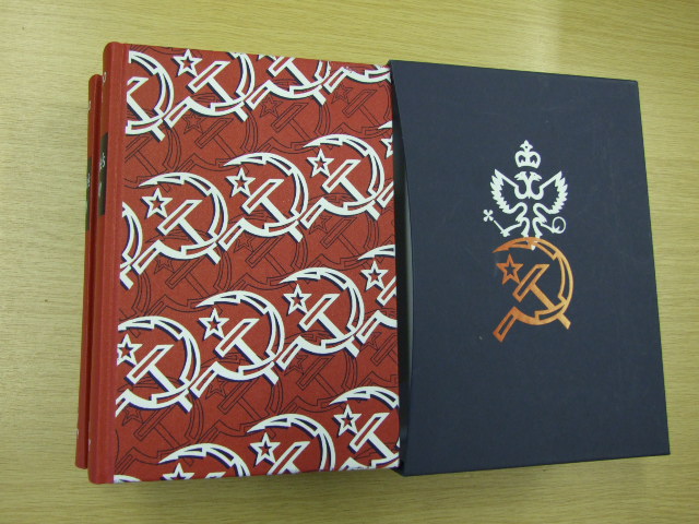 Figes, Orlando - A People's Tragedy (Published in by The Folio Society in 2013. The award-winning history of the Russian Revolution (1891-1924), with a new introduction by author Orlando Figes. Two volumes bound in buckram. Blocked with a design by Neil Gower. Set in Minion with Albertina display. 1,096 pages in total. Frontispiece in each volume. 80 pages of illustrations including 8 in colour. Book size:10" x 6.75". The Russian Revolution was one of the most extraordinary events of the 20th century, transforming a medieval autocracy into the world's first ever experiment in mass socialism. A People's Tragedy is the definitive account, combining a masterly overview of events with the personal stories of individuals, their hopes and ordeals. Translated into over 20 languages, and winner of five international awards, this is an unforgettable account of a pivotal era in history. )