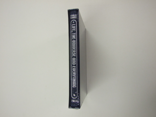 Adams, Douglas - Life, the Universe and Everything (Published in by The Folio Society in 2014. Introduced by Jon Canter. Illustrated by Jonathan Burton. More inspired lunacy in the third of Adams's 'trilogy of five', here introduced by his friend, the acclaimed comedy writer Jon Canter. : . . . . Based on 1 review. . Life, the Universe and Everything. Stranded in a damp cave on prehistoric Earth (specifically, what will one day be Islington), Arthur Dent is suddenly hurled through an eddy in the space–time continuum. He lands, with Ford Prefect and a sofa, on Lords Cricket Ground – swiftly followed by a gang of robots who steal the Ashes before departing. From thereon in, things only become more complicated as we encounter Arthur's nemesis, Agrajag, the unhappily immortal Wowbagger the Infinitely Prolonged, and the people of Krikkit, 'a bunch of sweet guys … who just happen to want to kill everybody'. Life, the Universe and Everything book. Bound in cloth. Set in Sabon. 208 pages. Frontispiece and 7 colour illustrations. Book size: 9" x 5.75". So long and thanks for all the washing-up. From the Folio Society description )