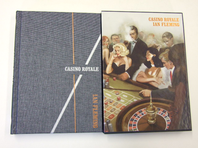 Fleming, Ian - Casino Royale (Published in by The Folio Society in 2015. Introduced by John Banville . Illustrated by Fay Dalton. A handsome edition of the first James Bond novel, introduction by John Banville. 'In this book we witness the birth and first steps … of one of the emblematic figures of our time'. This lavish edition, with artwork by acclaimed illustrator Fay Dalton, and an introduction by Booker-Prize winning author John Banville, pays homage to the enormous success of Ian Fleming's iconic novels. Few characters have come to define a genre as James Bond has done, and this introduction to his world, with its merciless villains, spectacular dangers, ill-fated romances and exotic settings, is Fleming at his best.. Production Details. Casino Royale book. Bound in blocked cloth. Set in Miller Text with Folio. 192 pages. Frontispiece and 6 colour illustrations. Pictorial slipcase. 9" x 6.25". )