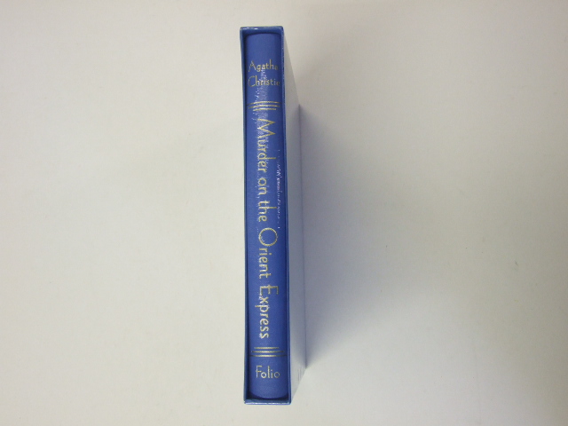 Christie, Agatha - Murder on the Orient Express (Published in by The Folio Society in 2016. Bound in buckram, blocked with a design by Andrew Davidson. Set in Bell. Frontispiece and 6 colour illustrations. Book size: 9” x 5.75”.One of the most celebrated Hercule Poirot novels, famed for its ingenious setting, carousel of suspects and startling dénouement. A curious group of passengers is assembled on the Istanbul–Calais coach of the Simplon Orient Express. They include a Russian princess, an Italian salesman, an English colonel – and Hercule Poirot. The morning after the train is stopped dead by a deep snowdrift, American millionaire Mr Ratchett is found stabbed to death, his compartment bolted on the inside. It is clear that the murderer must be one of his fellow passengers – and must still be on the train. One of Christie's most famous novels, Murder on the Orient Express boasts a truly audacious solution. )