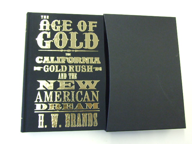 Brands, H W - The Age of Gold: The California Gold Rush and the New American Dream (Published in by The Folio Society in 2015. Utilising the stories of the men and women caught up in a period of extraordinary change, H. W. Brands has created an epic portrait of the Gold Rush, illustrated in this edition with rare contemporary photography. On 24 January 1848, the carpenter James Marshall noticed some sparkling flecks in a dry riverbed at Coloma, California. Having discovered, to his excited disbelief, that the shining nuggets were malleable, but not breakable, he approached his colleagues and uttered four words which would go down in history: 'I have found it'. Marshall's discovery of gold at Coloma on the American River, writes the distinguished historian H. W. Brands, was 'one of those rare moments that divide human existence into before and after'. It triggered 'the most astonishing mass movement of peoples since the Crusades', as fortune-seekers from all over the world flocked to California; their journey 'was the epic of the age, a saga of world history, an adventure on the largest scale'. The new state's population boomed from 15,000 in 1848 to 250,000 four years later, while the Gold Rush inspired a new American dream: the 'dream of instant wealth, won by audacity and good luck'. )