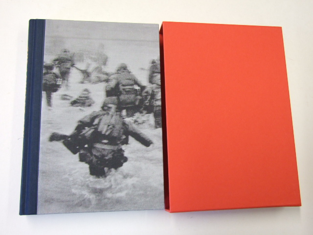 Ryan, Cornelius - The Longest Day The D-Day Story, June 6, 1944 (Published in by The Folio Society in 2019. The Folio Society edition of The Longest Day commemorates the 75th anniversary of D-Day. Cornelius Ryan's riveting text is complemented by 42 integrated photographs, and a binding image by Robert Capa. Three-quarter bound in blocked cloth with a printed cloth front board. Set in in Dante with Universe as display. 368 pages. 42 integrated black & white illustrations, plus 4 maps Printed map endpapers. Plain slipcase 10" x 6.75". )