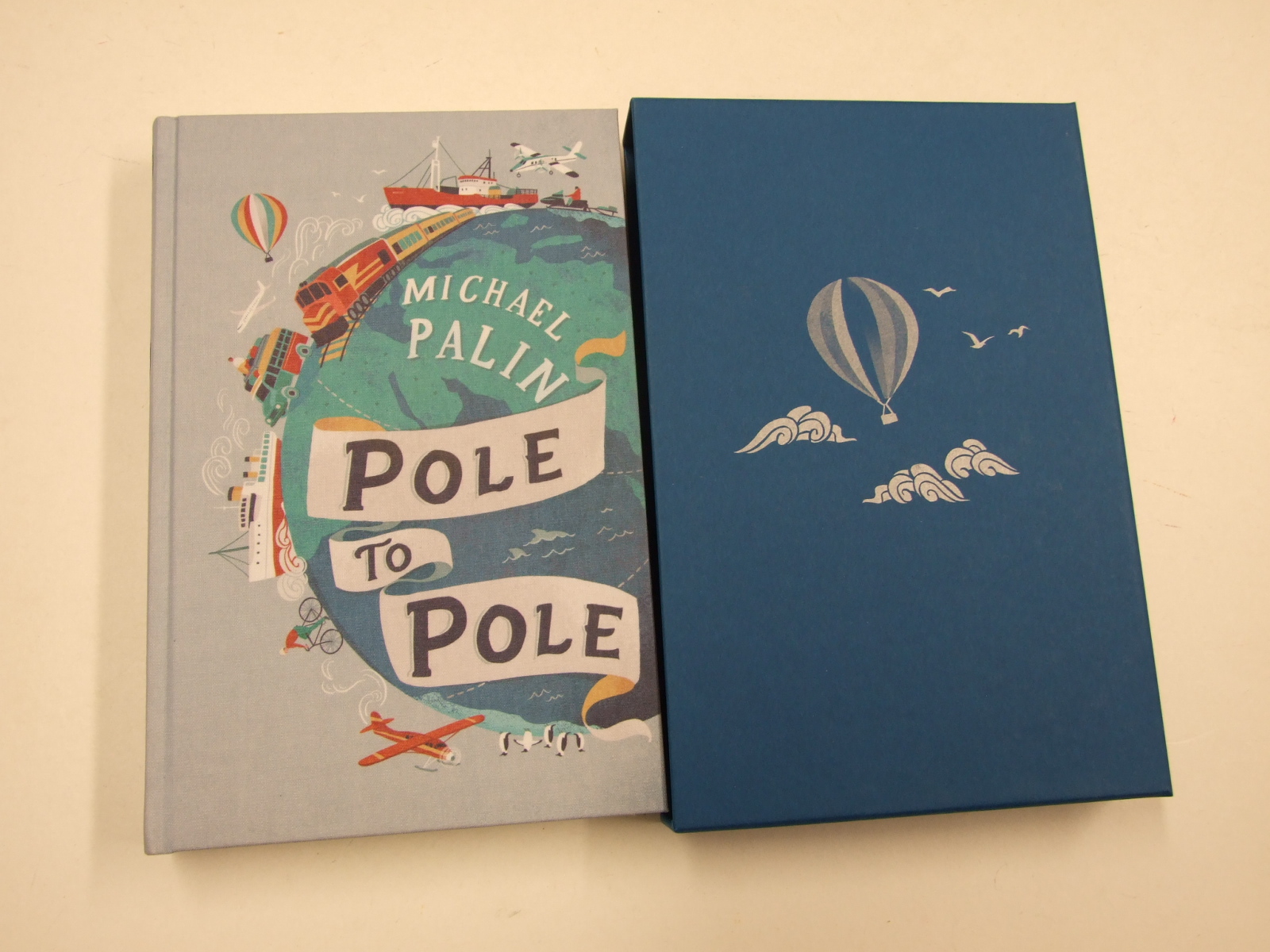 Palin, Michael - Pole to Pole (Published in by The Folio Society in 2022. With a new introduction by the author. Pole to Pole is Michael Palin's account of his epic journey from the Arctic to Antarctic, via the USSR, Africa and South America: a classic adventure in a beautiful Folio Society edition, with superb original photography. Pole to Pole is Michael Palin's legendary account account of an extraordinary journey from the North to the South Pole. His challenge was to follow the 30°E longitude line by land and sea, taking to the air only as a last resort. In the gruelling six-month trek, Palin covered 23,000 miles across 17 countries, including Norway, Russia and Ukraine (at the time, both part of the USSR), Turkey, Egypt, Ethiopia, Zimbabwe and Chile. Opening with a new introduction by the author, in which he recalls his childhood dreams of far-off lands and legendary adventurers, this lavish Folio edition includes 24 pages of colour photography – a rich compendium of landscapes, nations and people, bookended by shots of Palin standing alone at each extremity of the earth. The newly redrawn maps are the work of illustrator Sara Mulvanny, whose whimsical cover design shows every mode of transport used in the trip. Frank, perceptive and very funny, Pole to Pole is an epic journey with the most engaging of travel companions. PRODUCTION DETAILS. Bound in printed cloth with a design by Sara Mulvanny. Set in Meridien with FreightSans Pro as display. 320 pages. 24 pages of colour plates, mono motifs throughout. 5 mono maps. Printed slipcase. 9.5" x 6.25". )