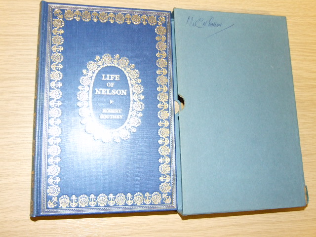 Southey, Robert - Southey's Life of Nelson (Published in by The Folio Society in 1956. 304pp, monochrome illustrations, battle plans; endpaper maps. Blue top edge. Edited and introduced by Kenneth Fenwick. Frontispiece portrait of Lieutenant Horatio Nelson. Black and white illustrations. Southey's classic biography of the great admiral. Taken from the original work by Robert Southey, this is the story of the life of Horatio Nelson, starting from his early career in merchant shipping and covering his part in the many battles around the Mediterranean and the injuries he sustained, leading up to his death at the Battle of Trafalgar. )