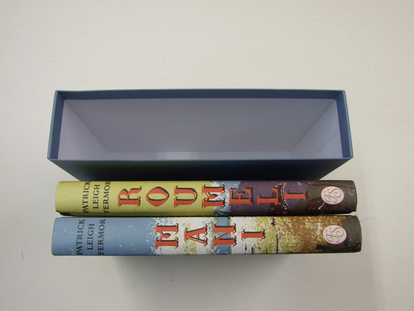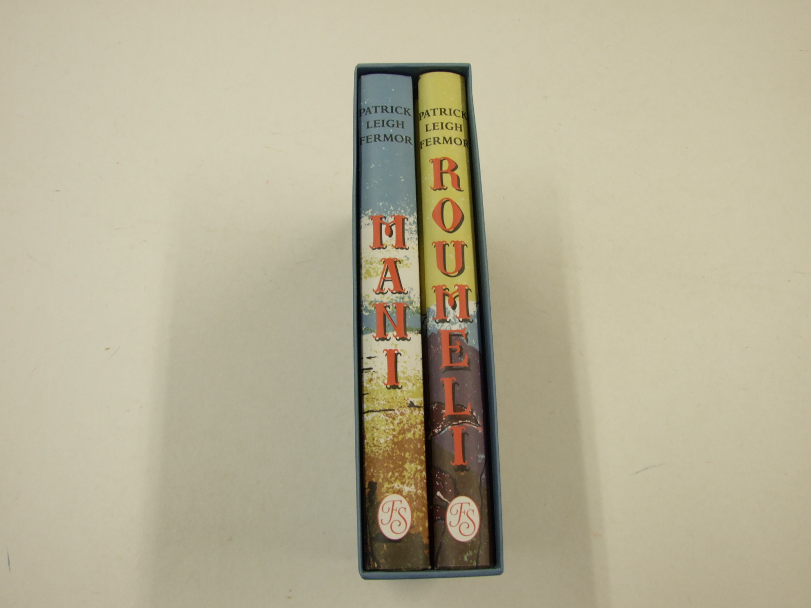 Published in United Kingdom by Folio Society. 2017. First Printing. 2 Fine or Near Fine Hardbacks. Roumeli has a single foxing mark to the bottom page edges. No inscriptions or bookplates. Near Fine slipcase. Slight fading to panels of slipcase. Introduction by Artemis Cooper. Illustrations by Katyuliu Lloyd. Photographs by Joan Eyres Monsell. Frontispieces, numerous photographs toned in sepia, illustrations in the text and maps; pictorial cloth, backstrips lettered in red and black, dark sepia endpapers