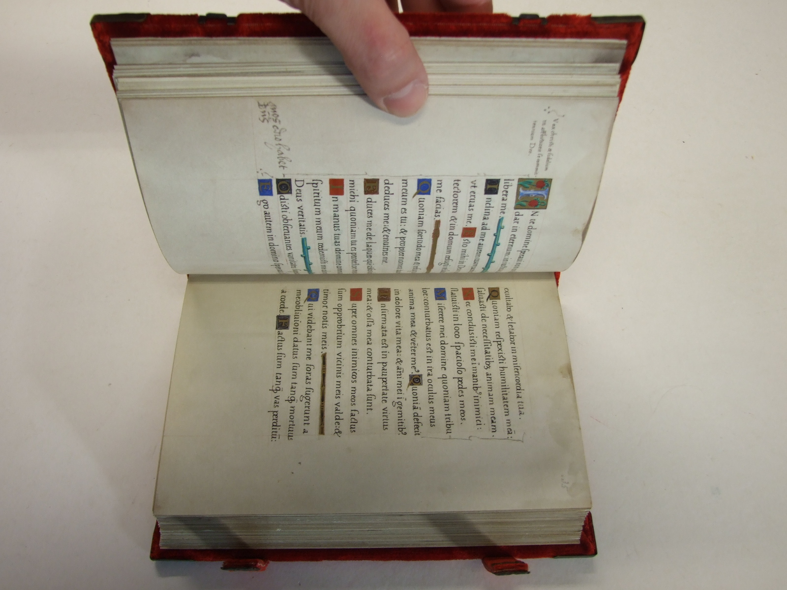 Published in United Kingdom by Folio Society. 2012. First Printing. Fine Hardback. No inscriptions or bookplates. Fine slipcase. Limited Edition of 980 numbered copies and a few lettered copies, of which this is letter D. 360 pages with illustrated capitals throughout and 7 full-colour miniatures, Edge-gilding on all sides. Accompanied by a specially commissioned Commentary volume by Professor James P. Carley, the foremost expert on the library of Henry VIII. Bound in buckram blocked in matt gold. 96 pages; colour frontispiece. Book size: 8.5" x 5.75". Both volumes are presented in a buckram-bound solander box, blocked in matt gold. The personal prayer book of Henry VIII annotated in his own hand. Few of the treasures in the British Library evoke such a powerful reaction from visitors as the private prayer book of King Henry VIII. This Latin Psalter was one of Henry's most cherished possessions, a book he pored over and annotated throughout. His marginal notes, which can be clearly read, give us an unrivalled insight into the private thoughts and spiritual concerns of the king. Now, 500 years after his accession, the Prayer Book has been reproduced in facsimile. To own it is to own a piece of history, and to have the most intimate link with this remarkable monarch. Exceptionally, the original binding of the Prayer Book has survived, along with most of its clasps. This has allowed The Folio Society to reproduce it exactly, from the red silk velvet on wooden boards to the intricate design of the brass clasps. Inside, every detail of the original is visible, from the beauty of the glorious illuminations to the faintest of pencil marks and water marks on the vellum. Even the irregular effect of the original page edges has been achieved, by gilding them before they are sewn. The result is a facsimile that reflects both the opulence and intimate nature of this extraordinary royal treasure.
