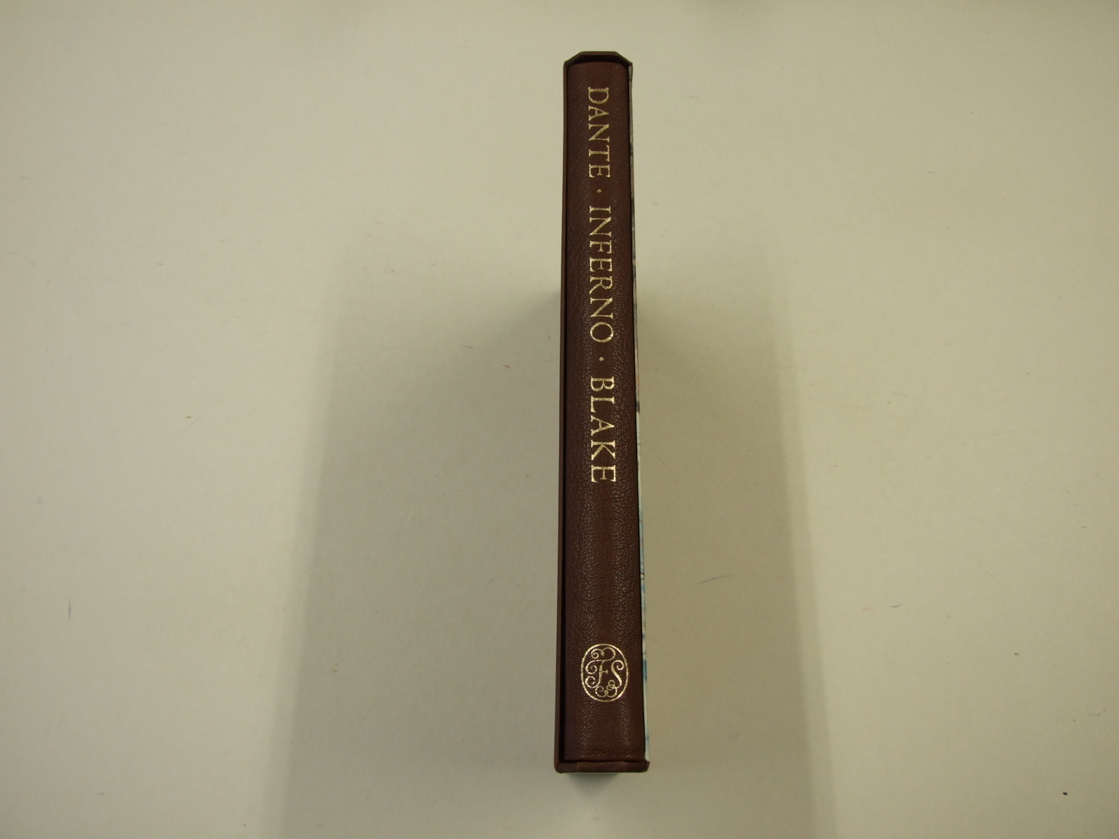Published in United Kingdom by Folio Society. 2004. Reprint. Fine Quarter-Leather Hardback. No inscriptions or bookplates. Very Good+ slipcase. Some marks to panels of slipcase. Reprint with new binding and Blake picture to front panel. Folio - over 12" - 15" tall. Stunning edition of Dante's Inferno with 32 illustrations by William Blake. One of those wonderful productions only the Folio Society, bring out in 'full cloth printed with Blake's engraving of his watercolour to Canto 25, - The Serpent attacking Buoso Donati (Tate Gallery, London) Lettered endpapers - All Hope abandon ye who enter here. Typeset at the Folio Society in Monotype Walbaum. Printed by Bath Press Colourbooks on Book Design Smooth Paper and bound at the Bath Press. Ink/watercolour reproduction of illustrations by William Blake now in museums across the world. One of the finest Folio productions. Illustrated by William Blake.