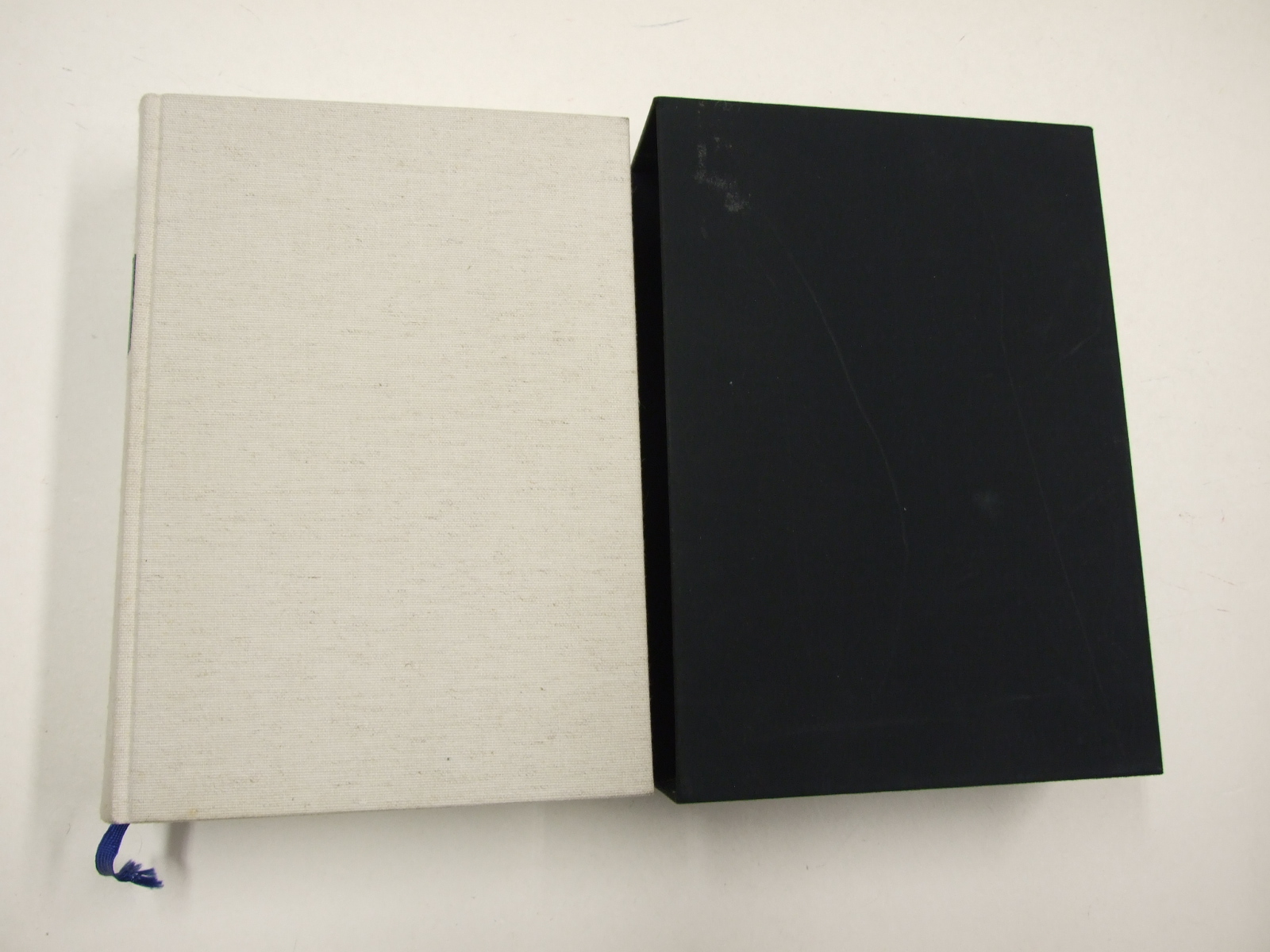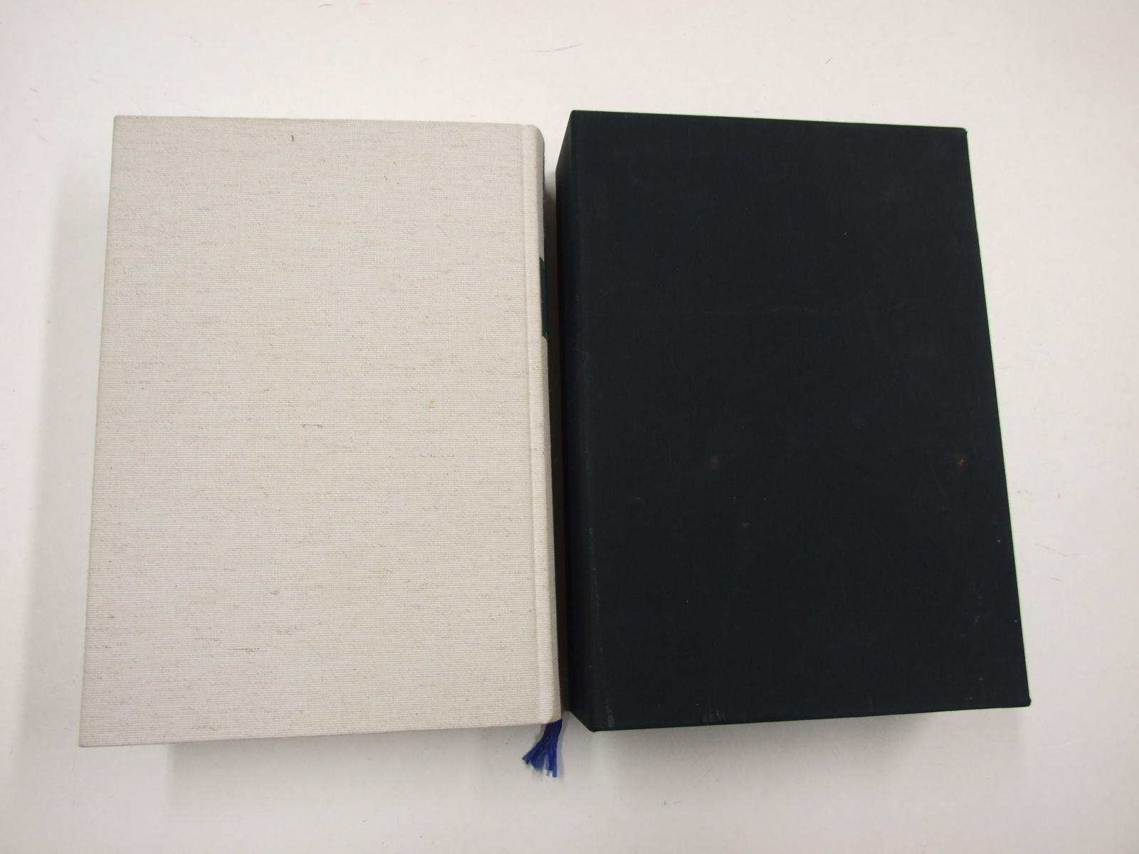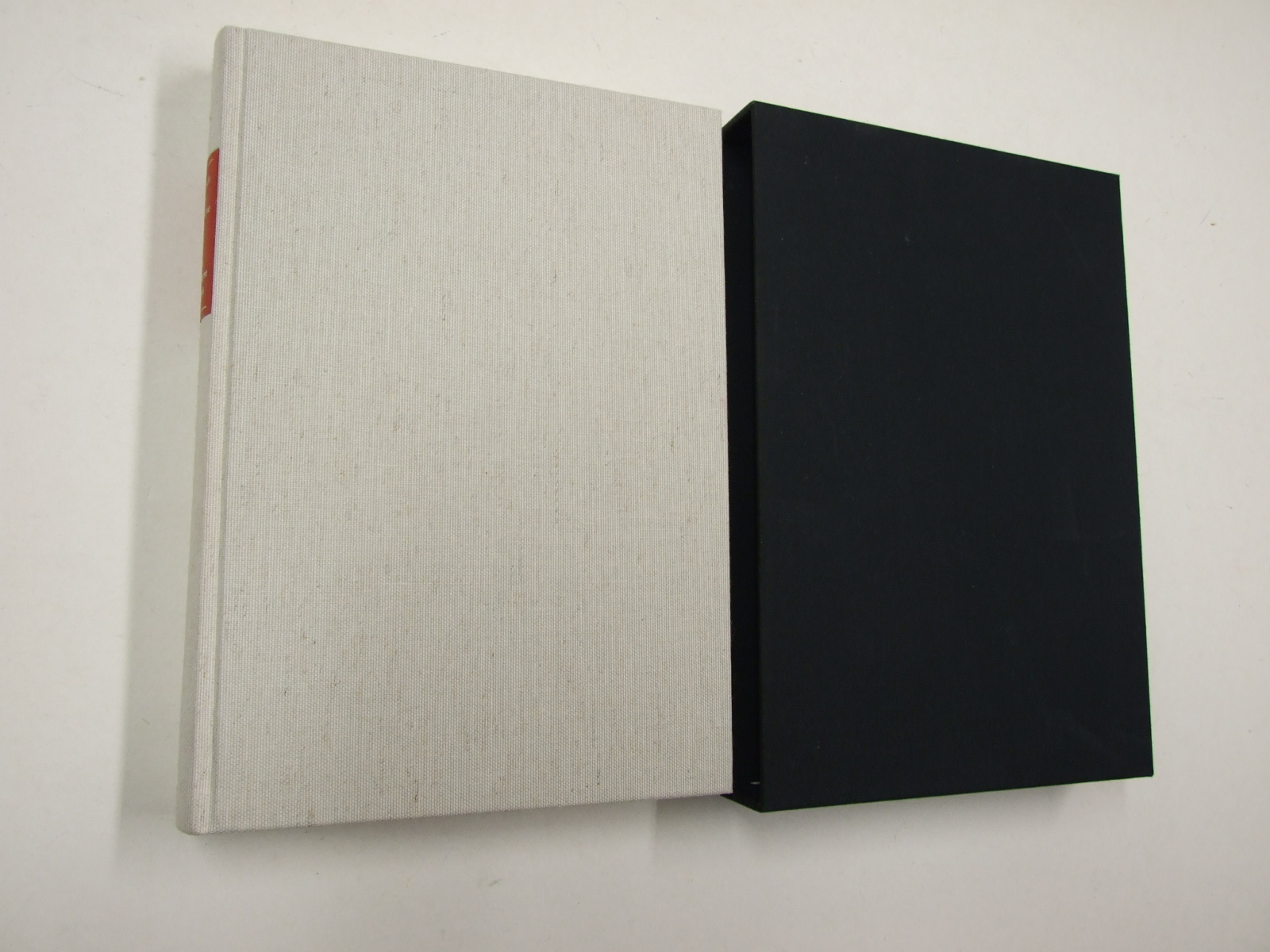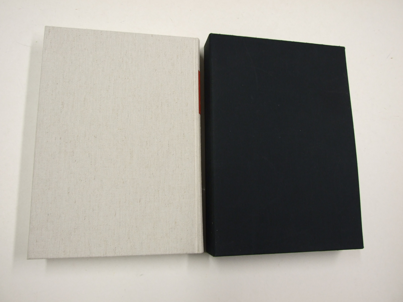 Published in Switzerland by Verlag. 2003. First Edition First Impression. Near Fine Hardbacks. Commentary volumes only. Previous owner name and comment "Accompanies copy 721" in neat pen on preliminary pages. Very Good slipcases. Some marks to panels of slipcases. Commentary volumes I and II on The Book of Lindisfarne / The Lindisfarne Gospels. Cotton MS Nero D.iv from the British Library, London. hardcover, linen. 2 volumes (25x17.5 cm). Volume I bilingual German and English, white mottled linen bindings, mounted. red or blue leather spine label with white title embossing, black linen slipcases.
