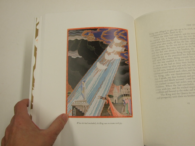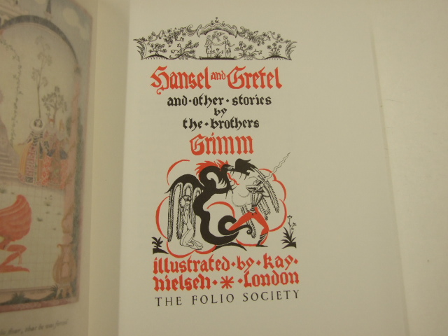 Published in London by Folio Society. 2017. First Thus. Fine Hardback. No inscriptions or bookplates. Fine solander box. Limited to 980 hand-numbered copies of which this is number 220. A Golden Age gift book in facsimile for the first time. Kay Nielsen's rarest work with his virtuoso blend of folk-tale drawing and Art Deco stylisation illustrating 22 of the best-loved tales by the Brothers Grimm. Full of hope yet suffused with cruelty, exuberantly highspirited yet unflinchingly violent: the tales of the Brothers Grimm have enthralled audiences of all ages across the world since their first appearance in the early 19th century – so much so that only the Bible and the Qur’an have been translated into more languages than the Grimms’ collection of German folklore. Facsimile volume: 312 text pages set in Caslon type. Text printed on Caxton Wove paper. 12 colour plates reproduced from a copy of the first edition, printed on Natural Evolution Ivory paper and tipped on to text pages along one edge, protected with Japanese tissue overlays. 10 black-and-white images printed on Caxton Wove paper. Decorative initials in black and red. Endpapers printed in gold and orange inks. Gilded top edge. Bound in buckram, blocked in gold foil and screen printed in turquoise on front and spine with a design redrawn from a copy of the first edition